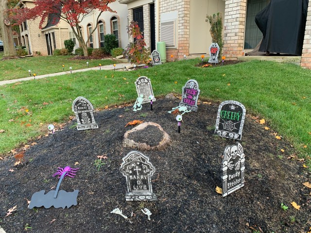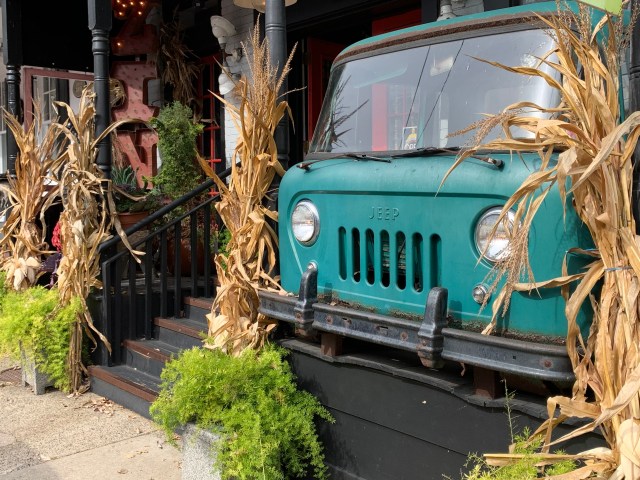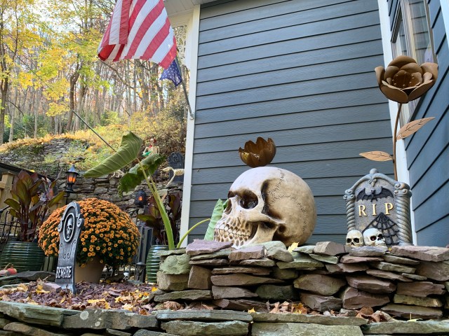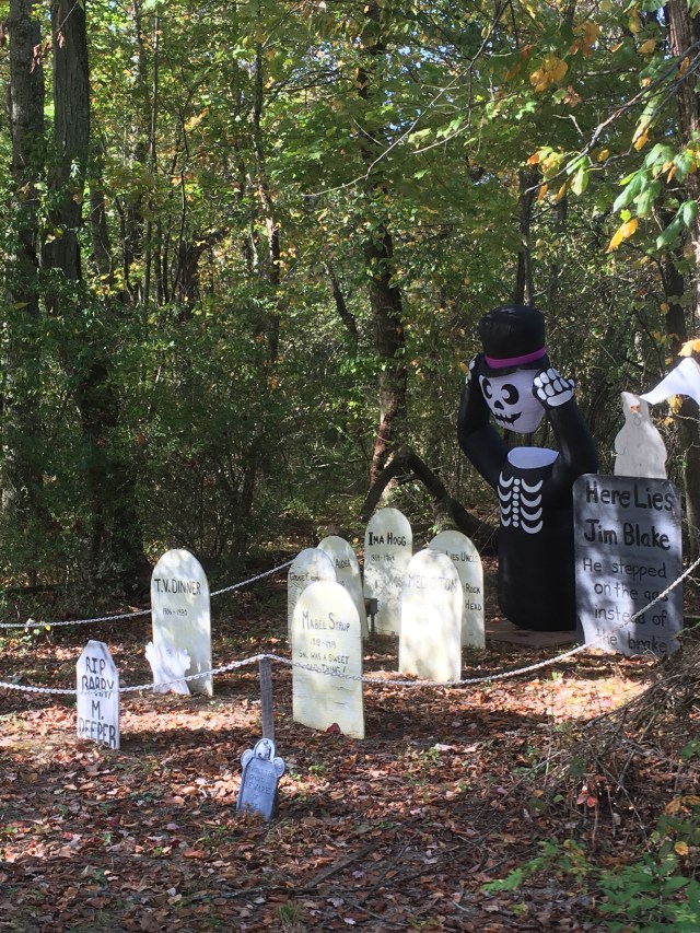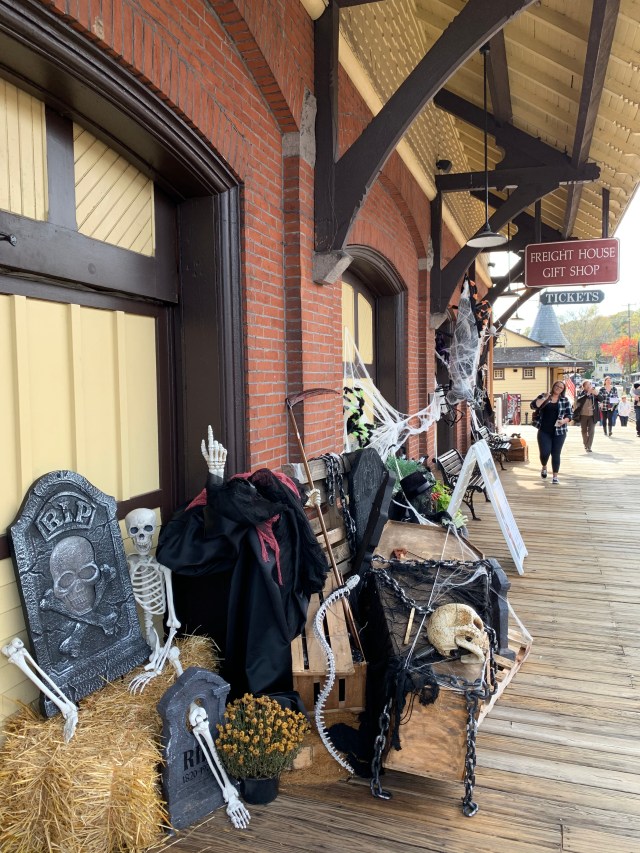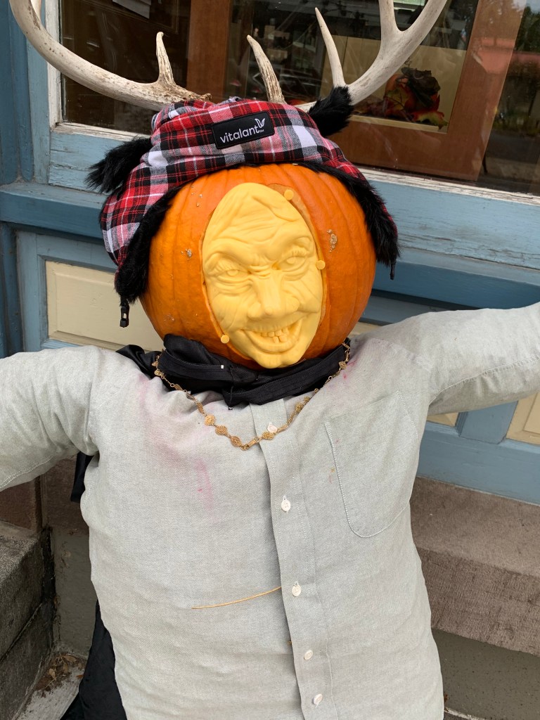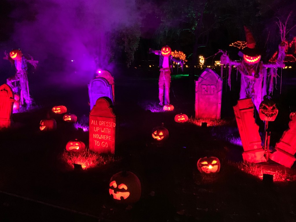 Dans notre imaginaire, les américains décoraient tous ou presque leur maison pour Halloween, et de façon disproportionnée. On s’attendait donc à un festival de Bouhhhh partout. Pas du tout ! Soyons clair, c’est un poil décevant de ce côté-là. Déjà, il faut savoir que les gens décorent certes leurs maisons en mode Halloween avec des squelettes, des pierres tombales ou autre joyeusetés…. 👻 Mais aussi sur le thème du Fall Harvest, les récoltes d’automne donc. Parce qu’au final, en octobre, c’est aussi ça qu’on fête !! On trouve donc beaucoup beaucoup de citrouilles évidemment, peintes, sculptées, ou juste posées comme ça, mais aussi des guirlandes de fausses feuilles aux couleurs de l’automne ou encore des paquets de maïs séchés. Pour profiter des décorations, il ne faut pas hésiter à rouler et aller dans les quartiers résidentiels ou dans les petites villes touristiques, qui décorent les lieux publics.