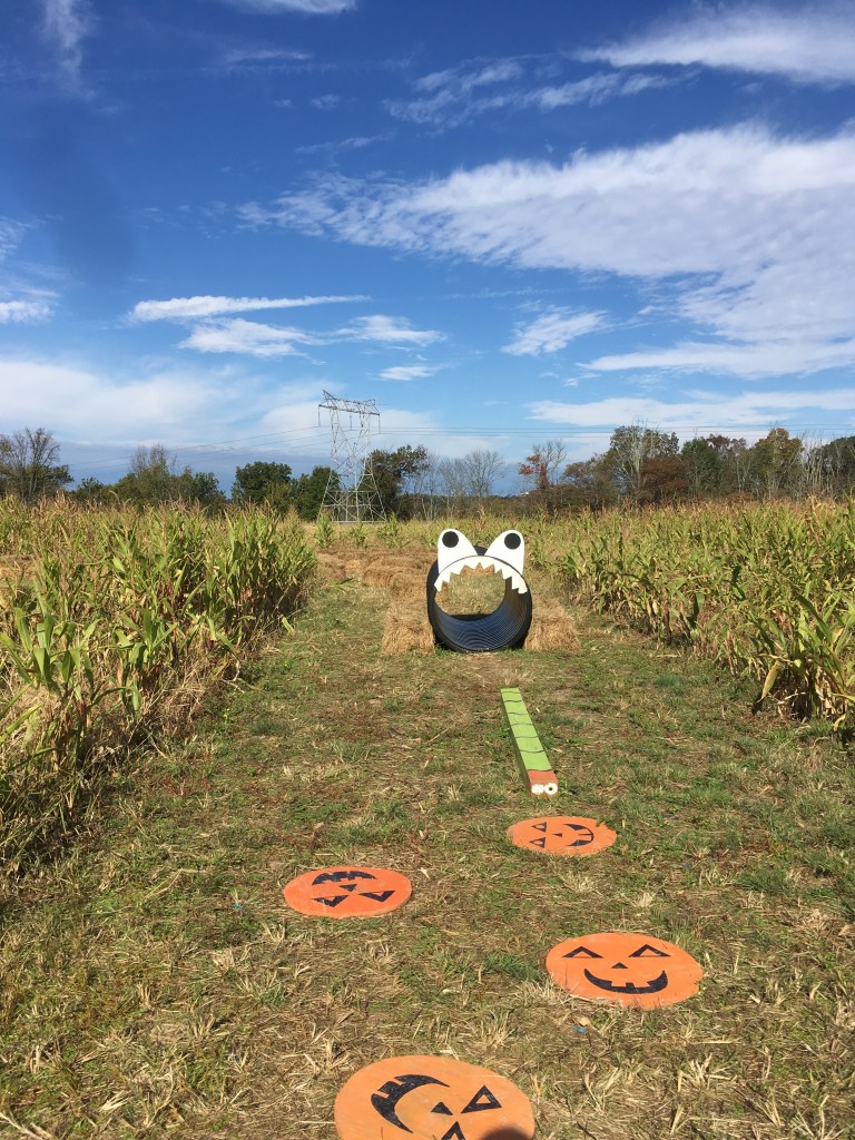 Ensuite, nous avons été à Kohler farms. Le site interne ne fait pas rêver j’avoue. Pourtant c’est de loin l’endroit qu’on a le plus aimé !! On se sent vraiment à la ferme, ça fait beaucoup plus traditionnel. En plus, elle est apprêtée spécialement pour Halloween donc on peut profiter de petites décorations tout au long du parcours 😊 On nous dépose au fonds de la ferme, où il y a le fameux champs de pumpkin (pour la pumpkin patch donc) et quelques jeux, adaptés aux tout petits. Par exemple, le Hay maze est fait qu’avec une seule botte de foin donc c’est très bas. Le top ! On y retournera l’année prochaine, c’est sûr !