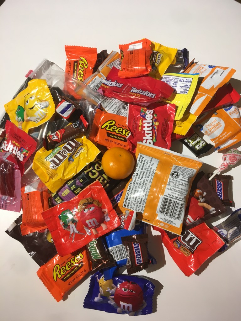 Mon fils n’a que deux ans, mais je me suis dit que j’allais quand même faire quelques maisons, histoire de. Au début, il ne comprenait pas trop et même, ça ne l’intéressait pas. Et puis au bout de quelques coups de sonnette, l’enthousiasme s’est installé, laissant peu à peu la place à l’envie frénétique de recommencer et de plonger la main sans retenue dans le saladier de bonbons !!!!!! 🍭 J’ai dû couper court parce que là on était partis pour toutes la nuit et je voulais aussi voir la chose de l’autre côté et distribuer moi aussi quelques friandises. Je n’ai eu que peu de passage, j’ai dû tout louper pendant ma propre tournée… Tant pis !