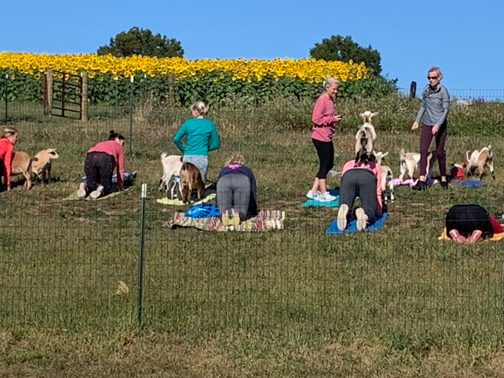 Une vraie tradition ici. Tous les week end d’octobre, les fermes ouvrent leurs portes et proposent de nombreuses activités pour la famille : goat yoga (si si je vous assure, la preuve en image plus bas!!), lancés de citrouilles (pumpkin) ou de balles, labyrinthe de maïs ou de foin (Corn maze / Hay maze), table rempli de maïs et ustensiles pour jouer, ect… Mais la star reste le fameux Hayride. Je ne pense pas qu’il y ait un mot français pour le traduire mais littéralement c’est promenade en foin. Le principe est donc de faire un tour de la ferme assis dans une charrette avec un fond de foin ; généralement tractée par un tracteur mais on trouve aussi des Hayrides avec des chevaux pour les amateurs 😉 Parfois, il n’y a d’autres but que la promenade en elle-même mais classiquement, le plan est de vous amener dans le champs de citrouilles de la ferme où vous pourrez choisir et cueillir vos citrouilles à cuisiner et sculpter pour Halloween.