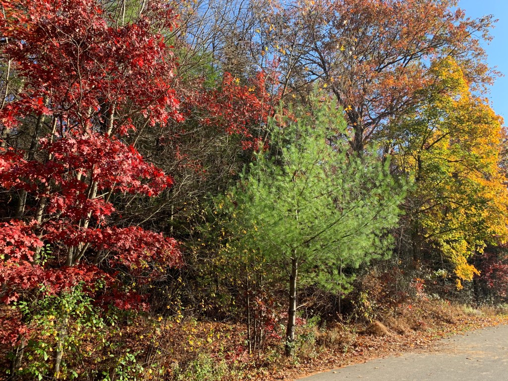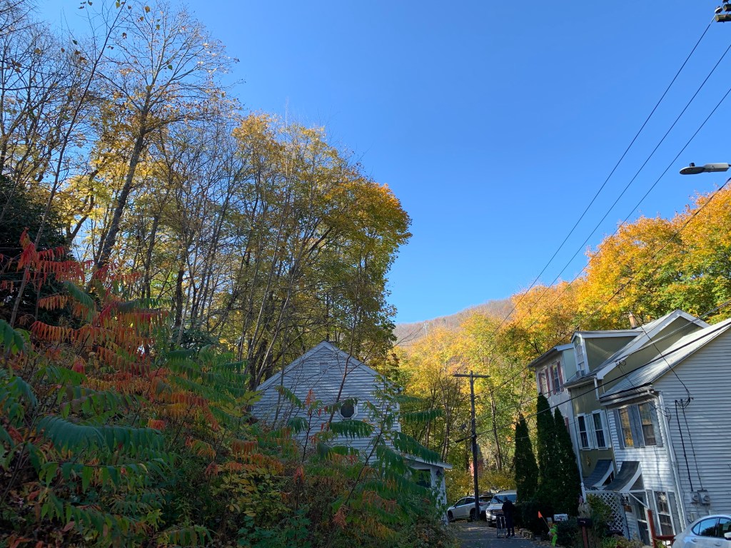 Tout comme en France, il y a tout plein de super spots pour profiter de la beauté du feuillage d’automne. Nous avons opté pour le plus près, les Poconos. Beaucoup trop tardivement, malheureusement. Nous y sommes allés le 2 novembre, quand il semblerait qu’il faille plutôt s’y rendre début octobre… Mais bon, ça permets d’avoir un petit aperçu et au moins on sait quoi faire en octobre prochain !! Le mieux est de se rendre sur le site poconosmountains.com, où on peut trouver, entre autres, un plan mis à jour tout le temps qui indique dans quelle zone se rendre, quand sont prévus les pics de couleurs, le pourcentage des feuilles tombées,… presque une science !!