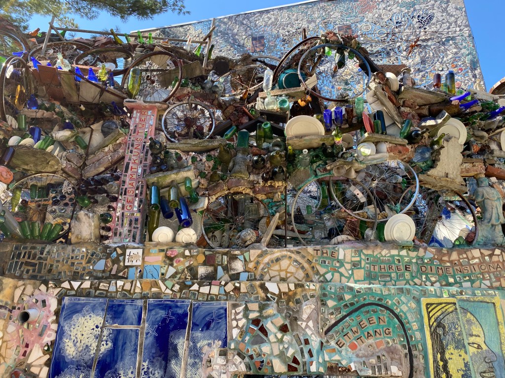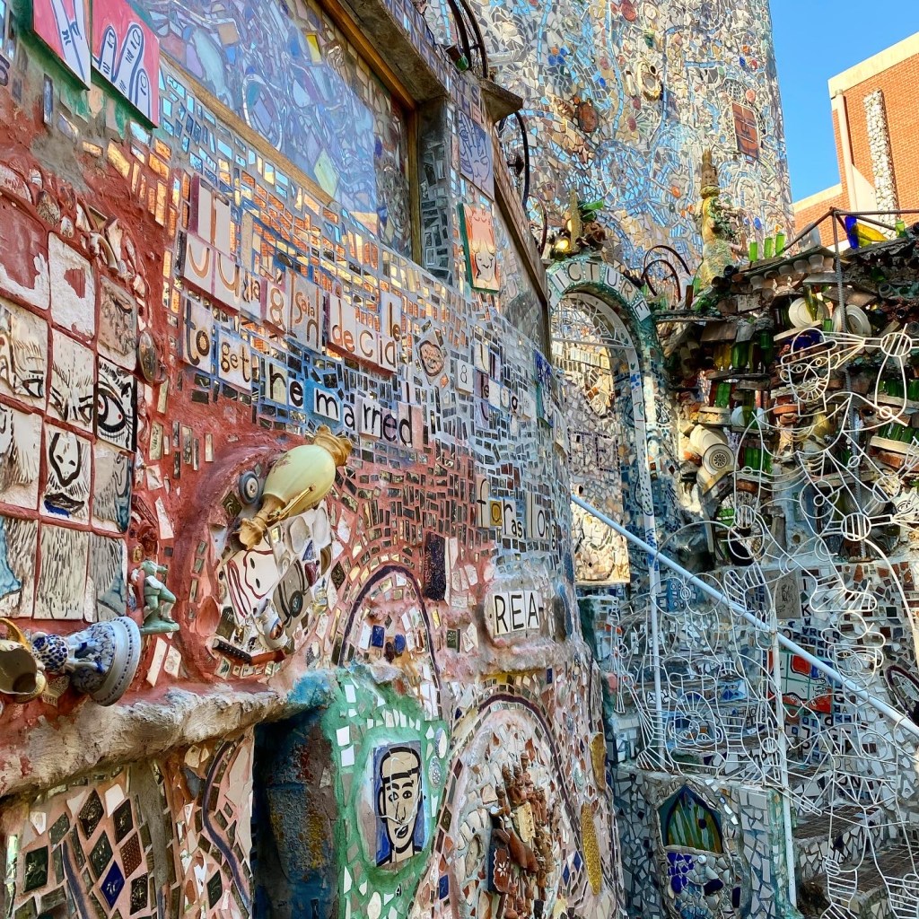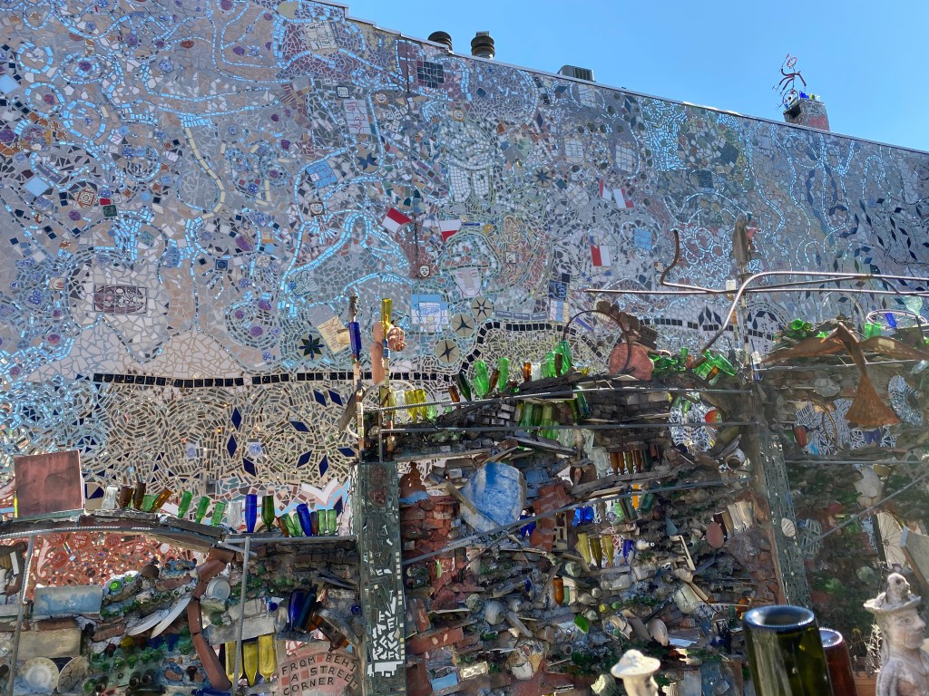 Ces « jardins » se visitent très vite, vous pouvez faire le tour en 30 minutes. Et pourtant, ça vaut vraiment le détour car c’est vraiment « magique » 😊 Entièrement recouvert de mosaïques avec des carreaux fait mains, des bouteilles, des roues de vélos, des miroirs, … C’est un lieu unique à Philly !