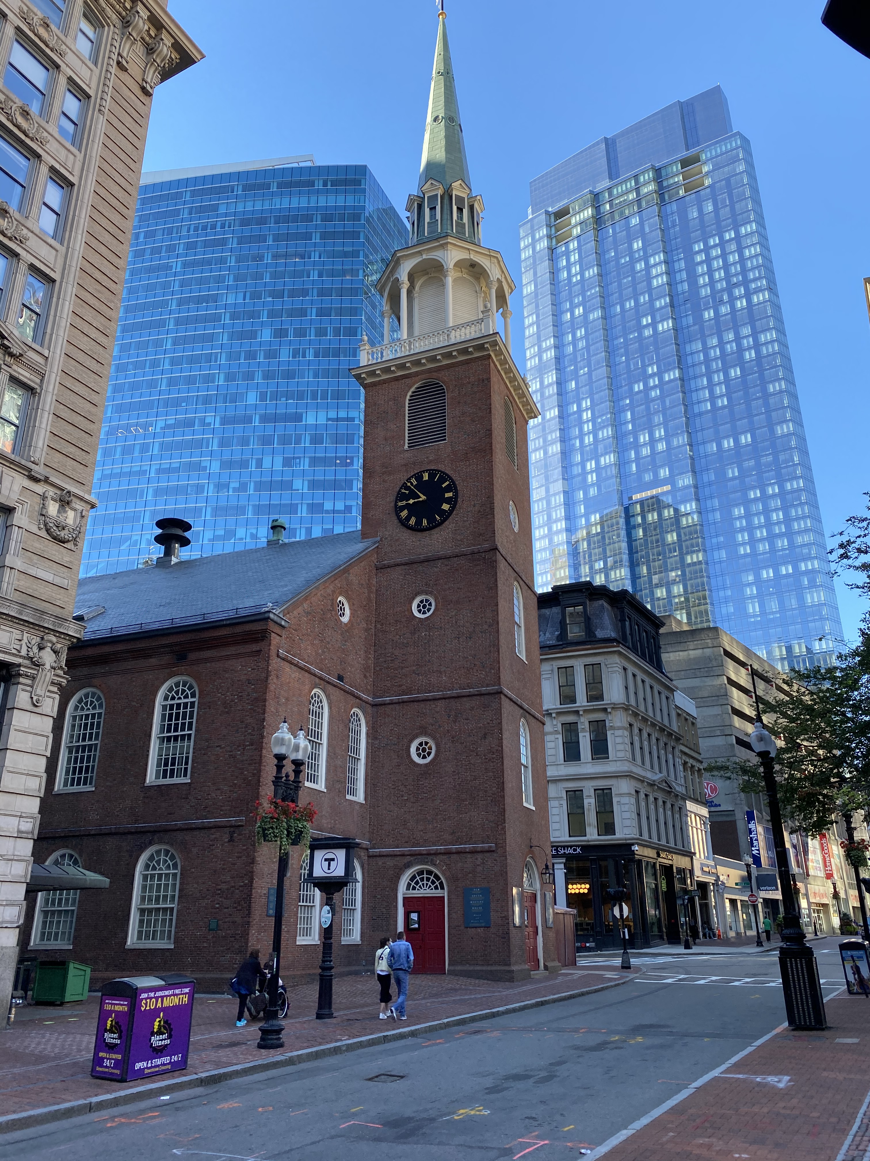 Revenons à notre trail 😊 Sur le chemin, pour moi, le top c’est le Old State House, ce vieux bâtiment entouré par de hauts buidings donne un contraste des plus saisissants, j’adore ! C’est sur son balcon que la déclaration d’indépendance a été lue pour la première fois en public le 18 juillet 1776. Et le moins top du trajet, c’est quand on s’est (littéralement) fait crier dessus par des fanatiques que Jesus nous aimait 🤪 Improbable, marrant, voir flippant mais pas hyper convaincant 🤔😂 Tellement américain !