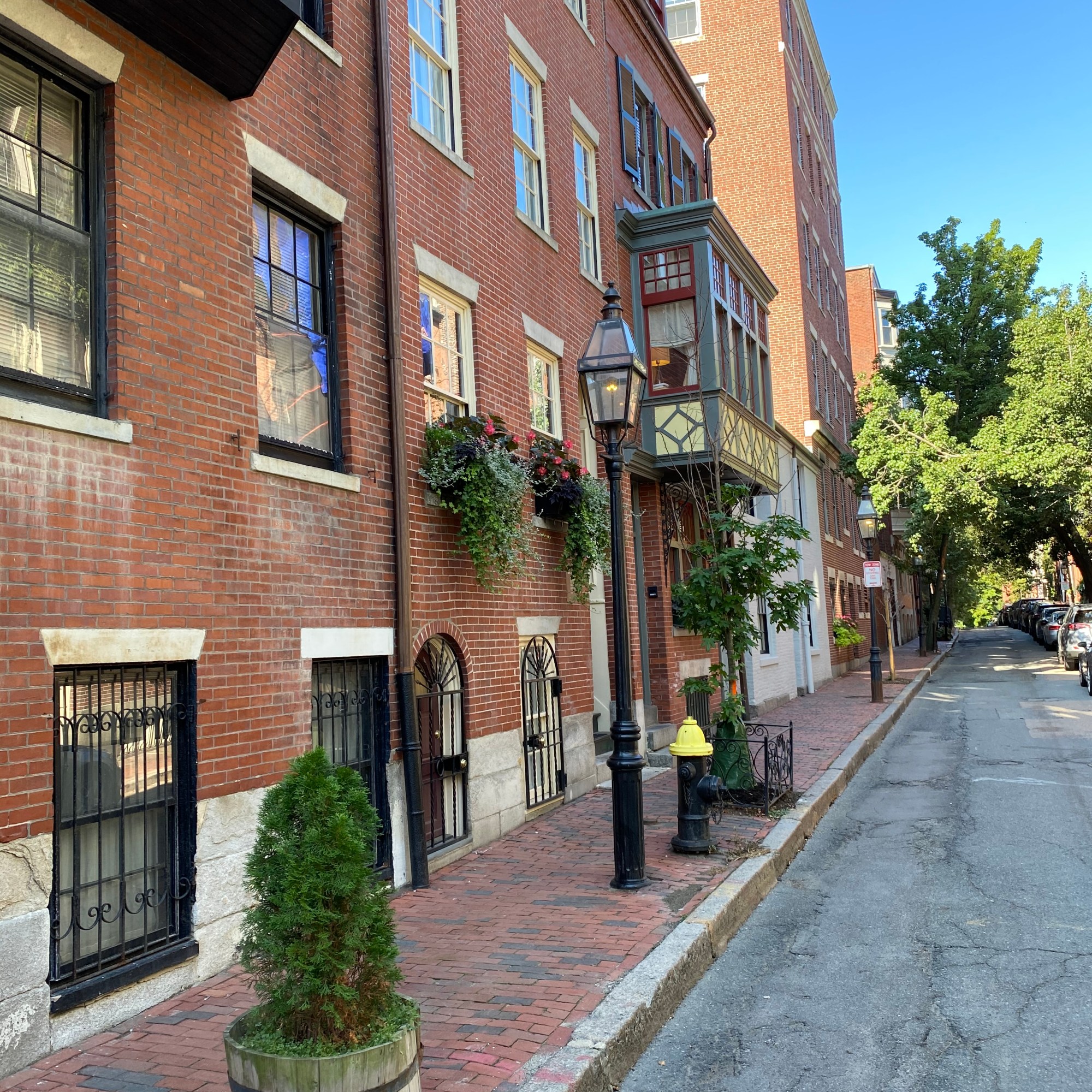 Vous lirez souvent qu’il faut aller à Acorn Street, une des rues apparemment les plus photographiées du coin, voir des USA diront certains. Effectivement, il y avait « foule » dans cette petite rue. En plus de casser un peu son charme, perso, on n’a pas trop compris pourquoi cet engouement. Elle est mignonne c’est vrai, mais tout le quartier étant superbe, cette rue n’a pour moi rien de plus. L’incompréhension 🙄 Mais bon, la voici quand même !