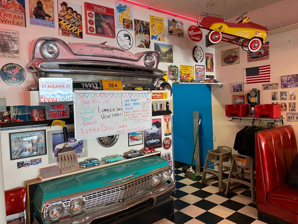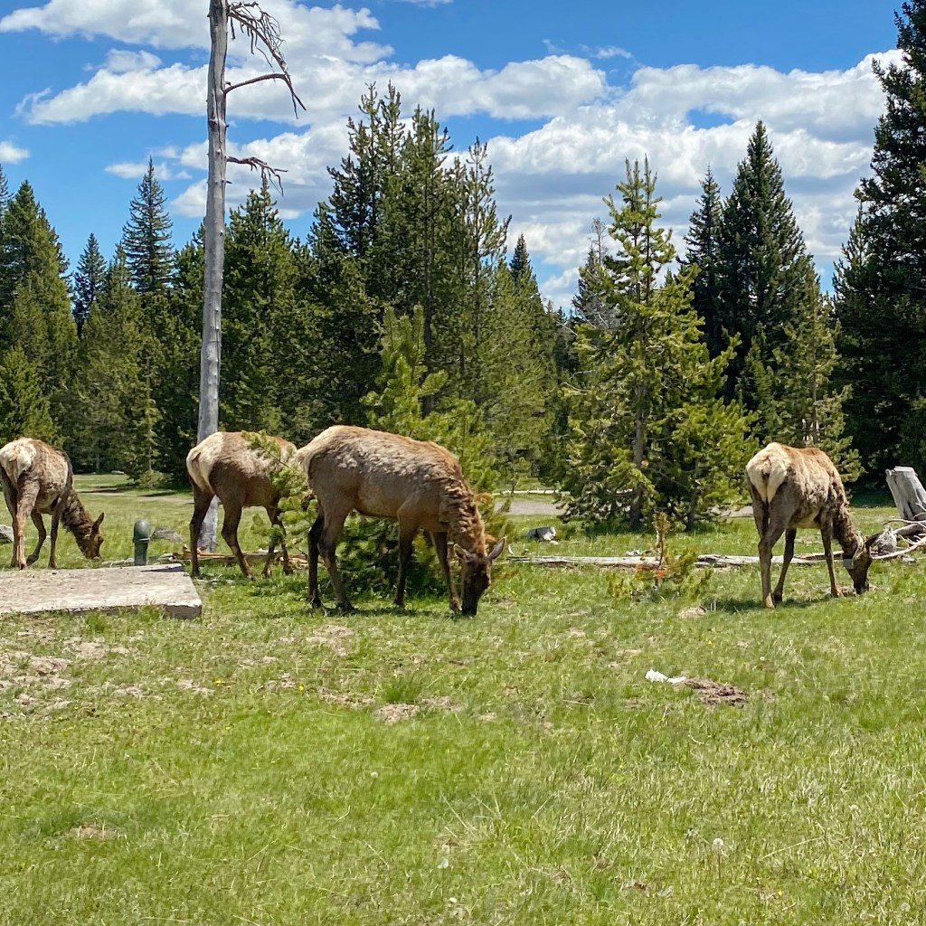 Les hôtels aux entrées de Yellowstone sont du coup également très prisés, faisant parfois exploser le budget hébergement. On a passé 2 nuits au Sud et 1 nuit à l’Ouest. Pour l’exemple, au Sud, on a été à Headwaters, $280 la nuit : pas de mini-frigo, pas de micro-ondes et… pas de wifi ! Ça donne le ton. En revanche, pour un retour à la nature et une déconnexion totale, c’est parfait ! Et le restaurant y est top, ce qu’il m’arrive rarement de souligner dans ce pays.