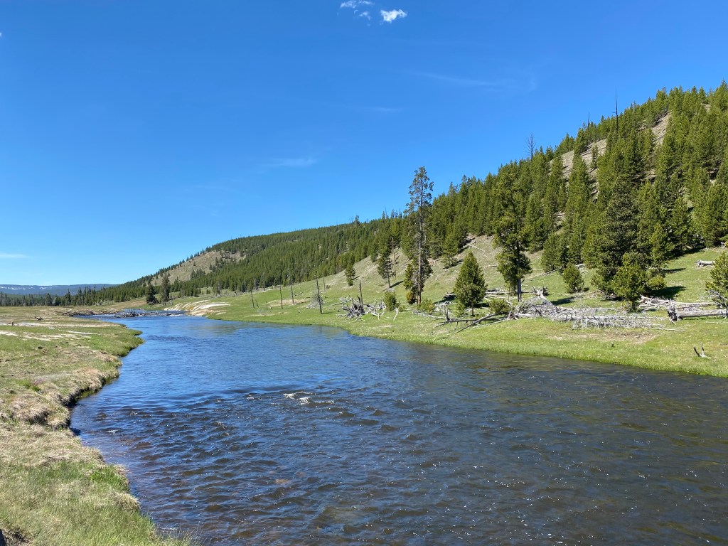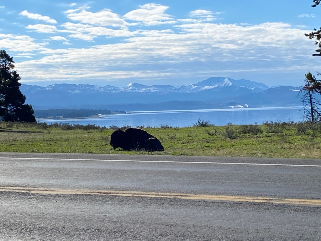 Nous avons eu le plaisir de voir une quantité innombrable de bisons donc, dont des bébés, mais aussi pas mal de wapitis, deux coyotes et même un ours noir mais de loin par contre. Sans trop de frustration puisqu’on avait déjà eu la chance d’en voir un de près à Shenandoah lors de notre road trip en Virginie.
