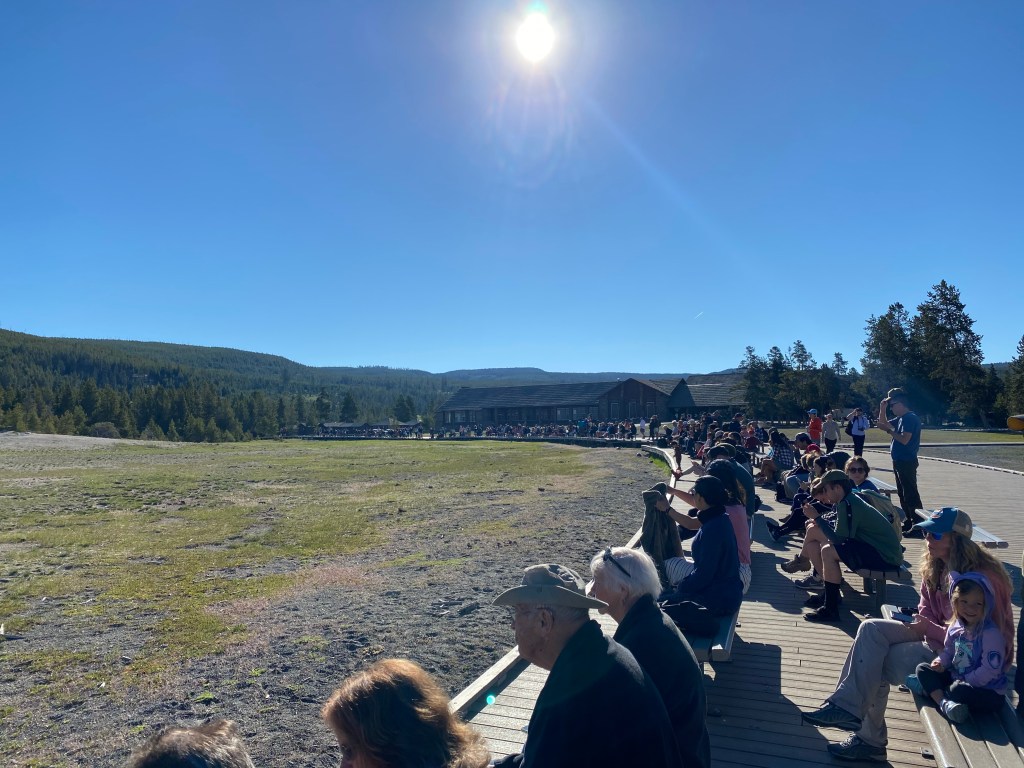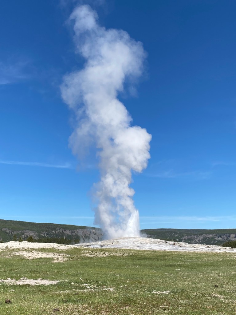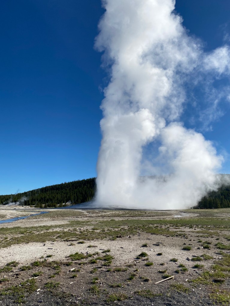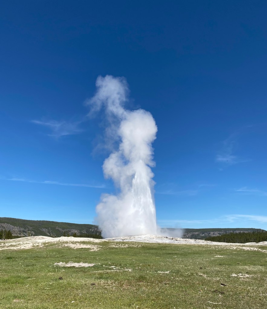 Le geyser star de Yellowstone ! Non pas qu’il soit le plus spectaculaire ou le plus beau, mais il est le plus régulier et le mieux aménagé pour l’observer. Il entre en éruption 17 fois par jour ! Le visitor center affiche sur un panneau l’heure approximative de la prochaine éruption des geysers qu’ils sont capables de prévoir. Mais vous pouvez retrouver l’information en ligne (si vous avez la chance de capter…).