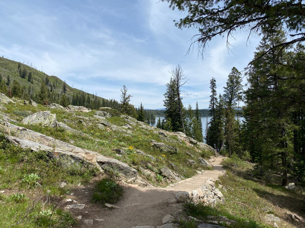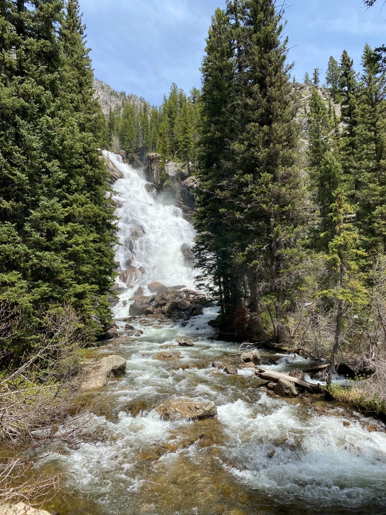 Le parc compte de nombreux lacs, mais il n’a pas été difficile de se décider sur quel coin aller. Dans toutes mes lectures, le même lac revenait tout le temps : Jenny Lake. Et la même rando : Hidden falls (qui permets de voir les seules cascades accessibles du parc) + Inspiration point (juste une bifurcation mais c’est le même chemin). Sachant qu’on allait faire LA rando du parc, on savait qu’il y aurait du monde, nous n’avons donc pas acheté de spray anti-ours 🐻 Attention néanmoins, selon où vous randonnez, c’est presque un indispensable.