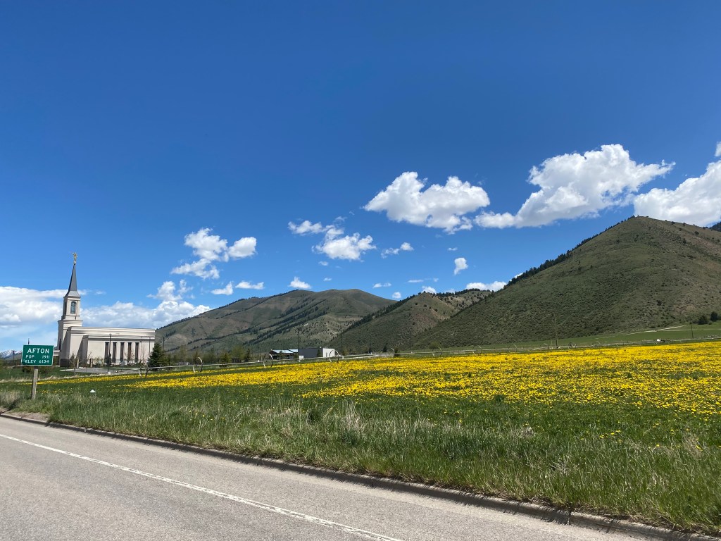 En quittant l’Utah pour rejoindre le Wyoming, c’est un changement d’ambiance drastique puisqu’on passe des paysages désertiques aux forêts, à la verdure, et aux bords de routes où il y a encore parfois de la neige 😮 Nous sommes quand même début juin, c’est fou !
