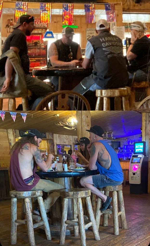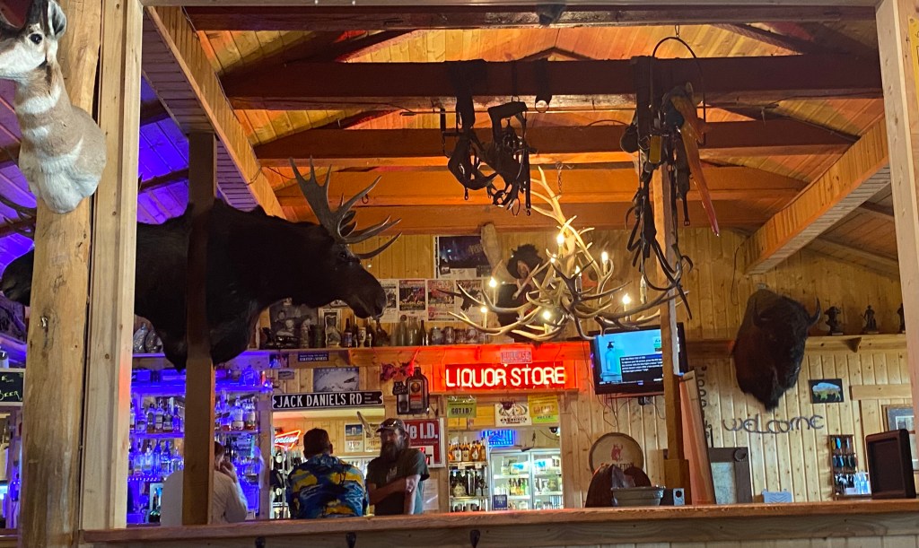 On s’est arrêté sur la route pour manger dans un bar/resto, disons… dans son jus…! Certains le nommeraient volontiers Dive Bar, mais moi je trouve que ce genre d’endroit est très éclectique, sympa et typique, et en voyageant c’est aussi ça qu’on cherche, non ?! Il s’agit du Bull Moose, et même si ça reste de la nourriture américaine, on nous a servi un des meilleurs burgers qu’on ait mangé depuis qu’on est aux US, c’est pas rien comme compliment 😁