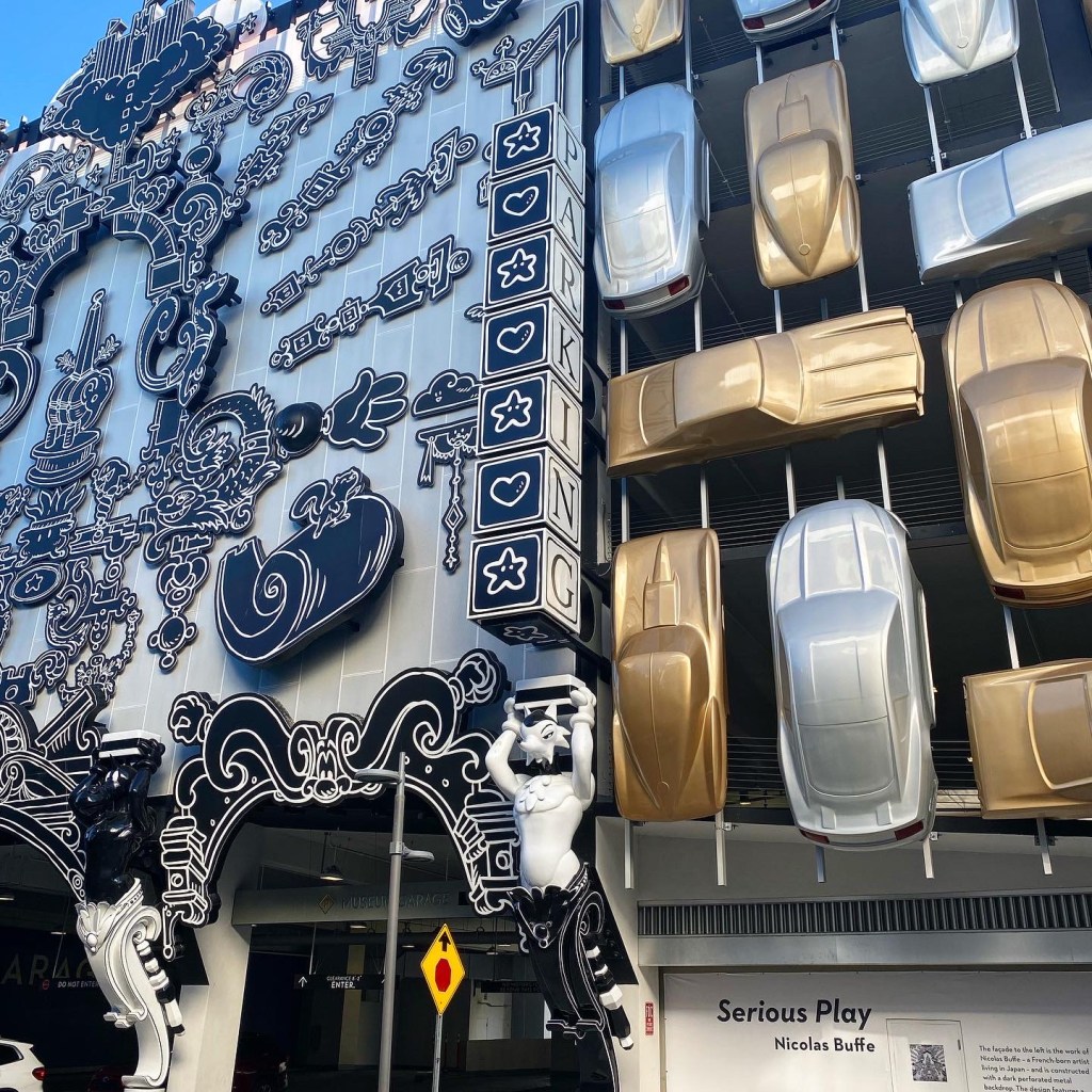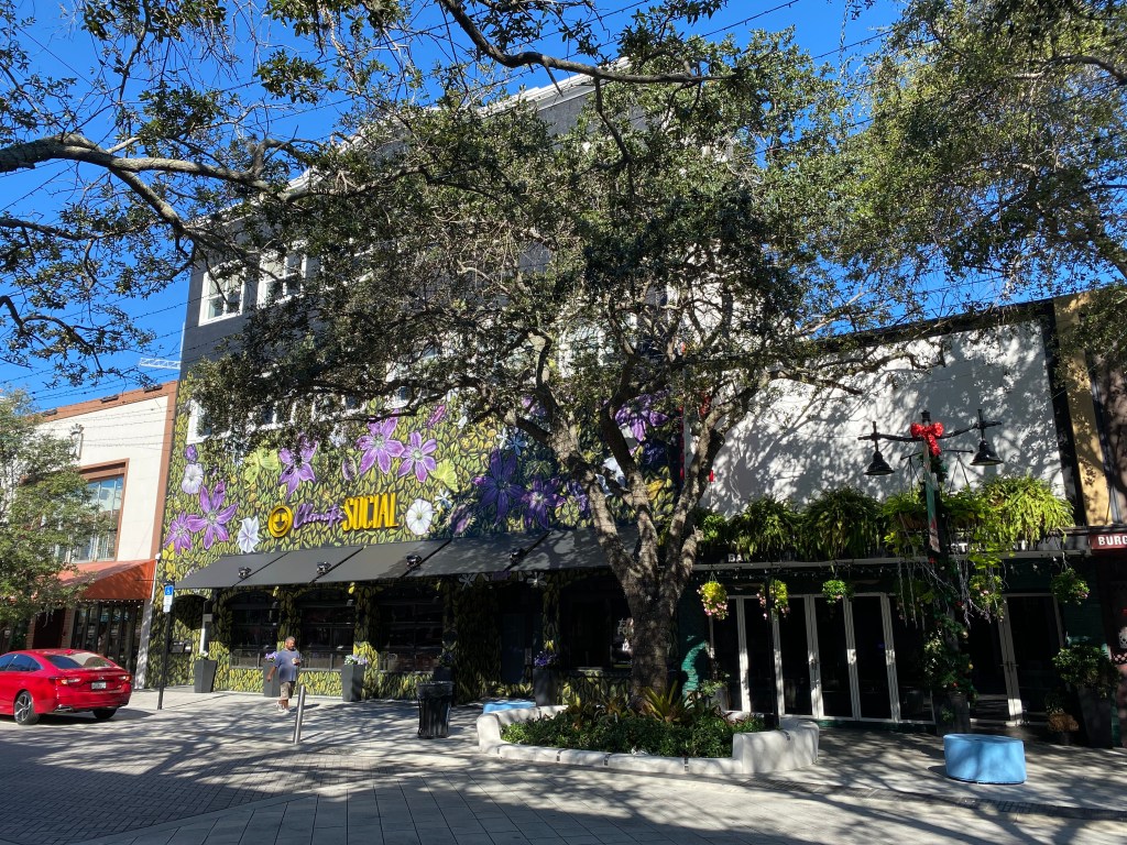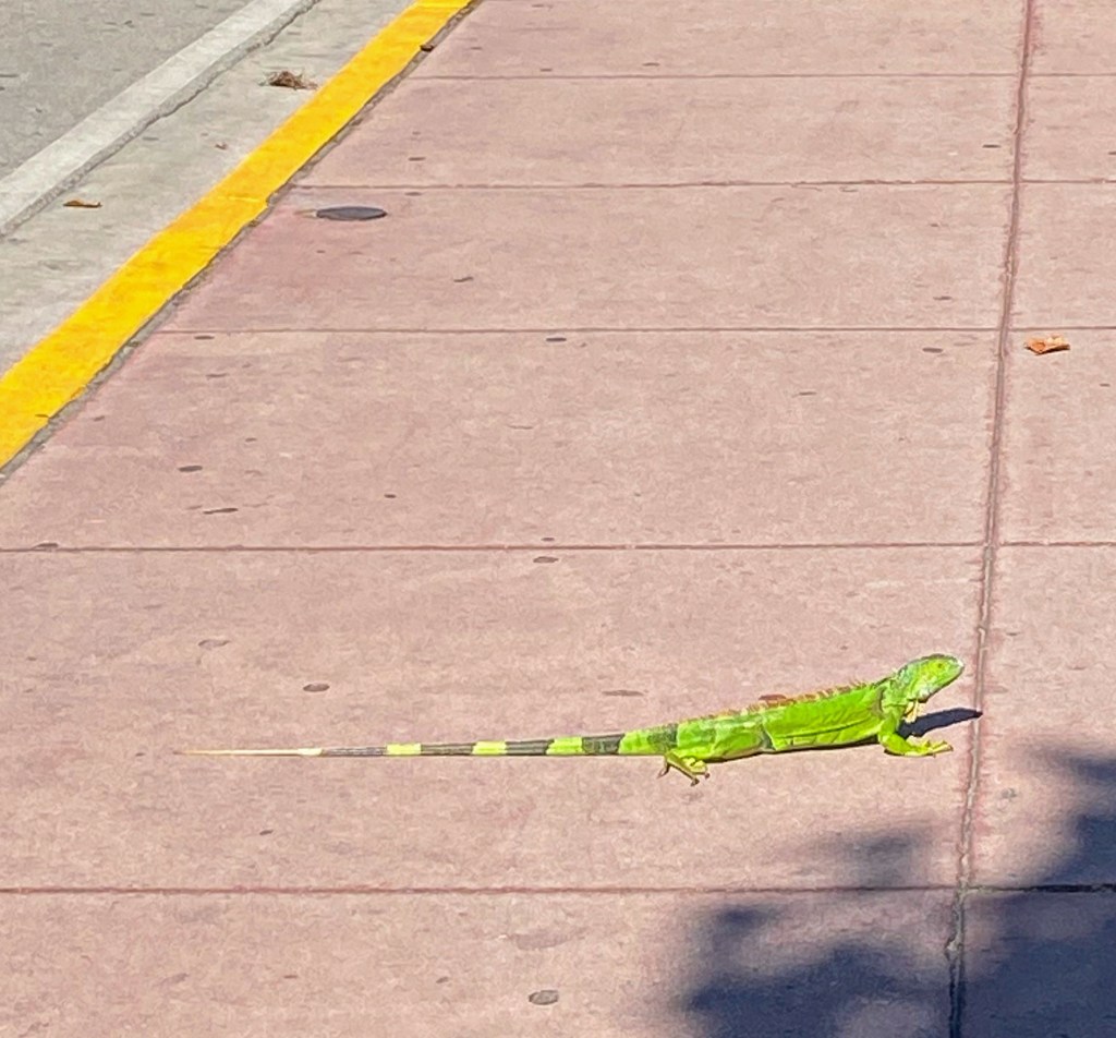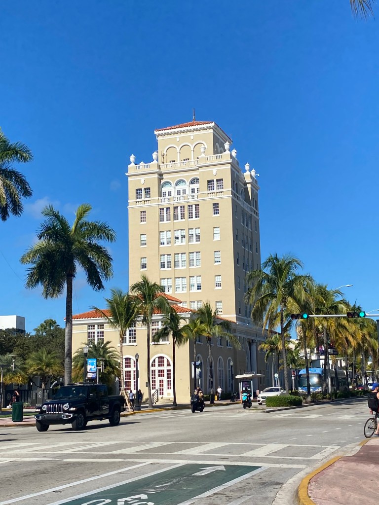 Miami est une ville bling bling et cette partie de la ville en est son paroxysme. Ce n’est pas forcément péjoratif, ça peut aussi être amusant. La rue était fermée à la circulation, l’occasion pour un monsieur m’as-tu-vu farfelu de déambuler encore et encore en roller avec une tenue improbable et son speaker tendu à bout de bras avec la musique à fonds… 🎶 Un groupe de 3 filles tentaient d’apprendre à en faire justement mais ce n’était pas un grand succès ! Des allers-retours de personnes excentriques aux tenus flashy. De la musique plein pot sortant des devantures de restos. Bâtiments style art déco. Vous vous imprégnez de l’ambiance rapidement et pouvez passer un long moment à observer ce tableau pittoresque.
