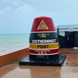 Cette bouée en béton marque le point le plus au sud de la zone continentale des USA. Il y avait la queue pour faire LA photo. La pluie nous a dissuadé d’attendre. Même si on est pas dessus, ça ira très bien !