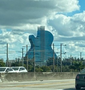 Et avant d’arriver à Miami, on est passé devant le fameux (et impressionnant il faut le dire) hôtel en forme de guitare du Hard Rock.