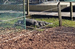 Dans l’eau, nous n’avons vu qu’un seul alligator. Mais sur le site de Gator Park, il y en avait plusieurs, énormes, qui dormaient sur l’herbe. Ils n’avaient pas été mis là, c’est juste qu’il fait plus chaud dehors que dans l’eau et ils étaient venus se poser. Évidemment, on est invité à ne pas trop s’approcher, ce qui est plutôt du bon sens 🤪