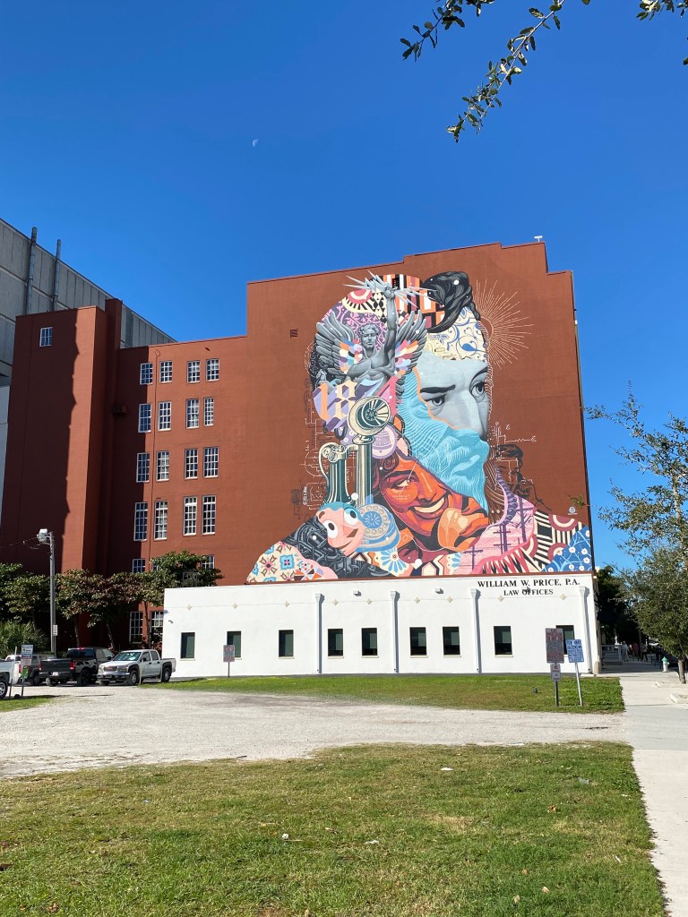 Le centre-ville est chic, mais pas bling bling comme parfois à Miami. Il y a de vrais espaces pour piétons, et malgré quelques commerces désaffectés qui n’est généralement pas signe d’une ville dynamique et sûre, le tout reste très agréable et on s’y sent bien. On a pu profiter de sculptures de sable, de street art et de quelques belles bâtisses.