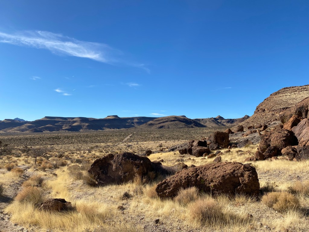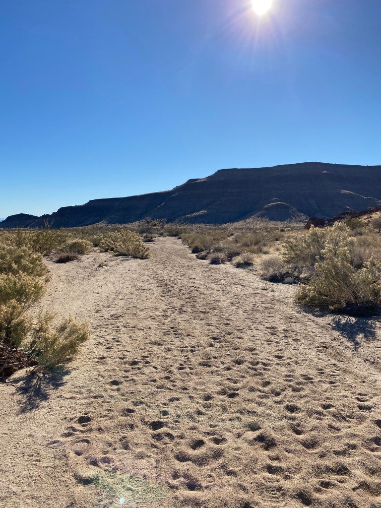 La partie Hole in the Wall a des petites pancartes pour identifier les plantes qu’on croise entre le camping et le visitor center. On a croisé du bétail, on a eu un peu peur de continuer sur le chemin car il y avait un veau assez près et le taureau nous fixait, probablement dans l’objectif de le protéger… On est passé tout doucement, en se dévisageant mutuellement !! Honnêtement cette partie est dispensable mais y’a personne, ça fait tellement de bien d’être au milieu de cette magnifique nature au calme qu’on fait en sorte de prolonger le moment. Mojave Preserve n’est visiblement pas appréciée à sa juste valeur.
