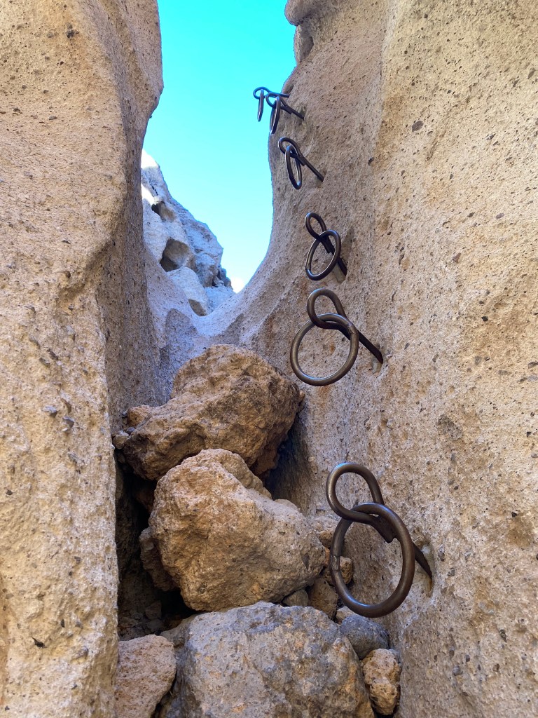 Andrea, pendant tout le reste du voyage, à chaque rando, nous demandait si ça allait faire l’aventure comme avec les rings 😁 Ce petit challenge a beaucoup plu à toute la famille !! Le premier passage était étroit, il fallait parfois être de profil pour avancer, et tellement abrupte que s’accrocher aux anneaux pour monter n’est pas une option. Sans eux, il faudrait faire demi-tour. Et le second passage avec les anneaux c’était pire, y’avait même pas de rochers pour faire un semblant d’escalier, c’était complètement vertical 🙃 Super fun !