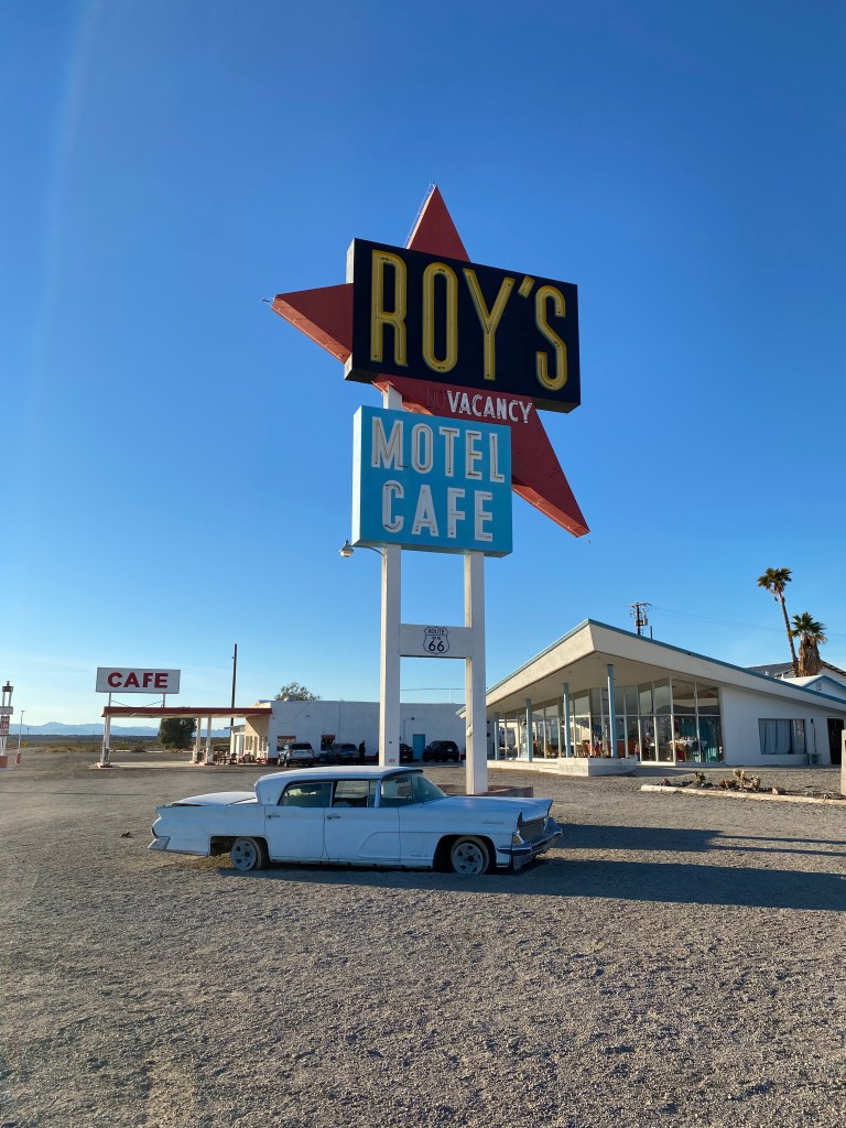 La plupart de la route 66, il faut le dire, c’est des bâtiments abandonnés et des motels défraichies… donc quand on tombe sur des partie comme ça, c’est chouette ! A la sortie de Mojave aussi, on était tombé sur un spot sympa, ça fait toujours plaisir !