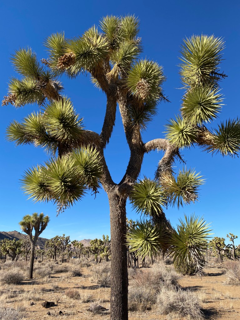 En route pour le prochain point, je me suis arrêté sur le bas-côté, y’avait un renfoncement. Pas grand monde, y’avait de beaux spécimens, enfin, j’ai pu profiter des arbres. J’ai refait ça une seconde fois sur le trajet, c’est une bonne façon d’admirer les Joshuas. Nickel !