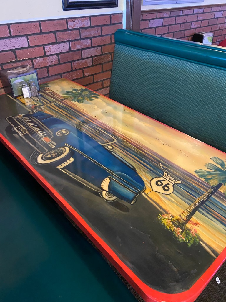 Arrêt déjeuner dans cette ville sur la route 66. Le petit musée consacré à la Mother Road était fermé, on a donc juste profiter un peu des murals et pris quelques photos de ci de là.