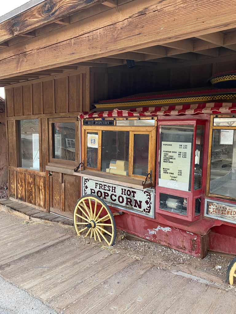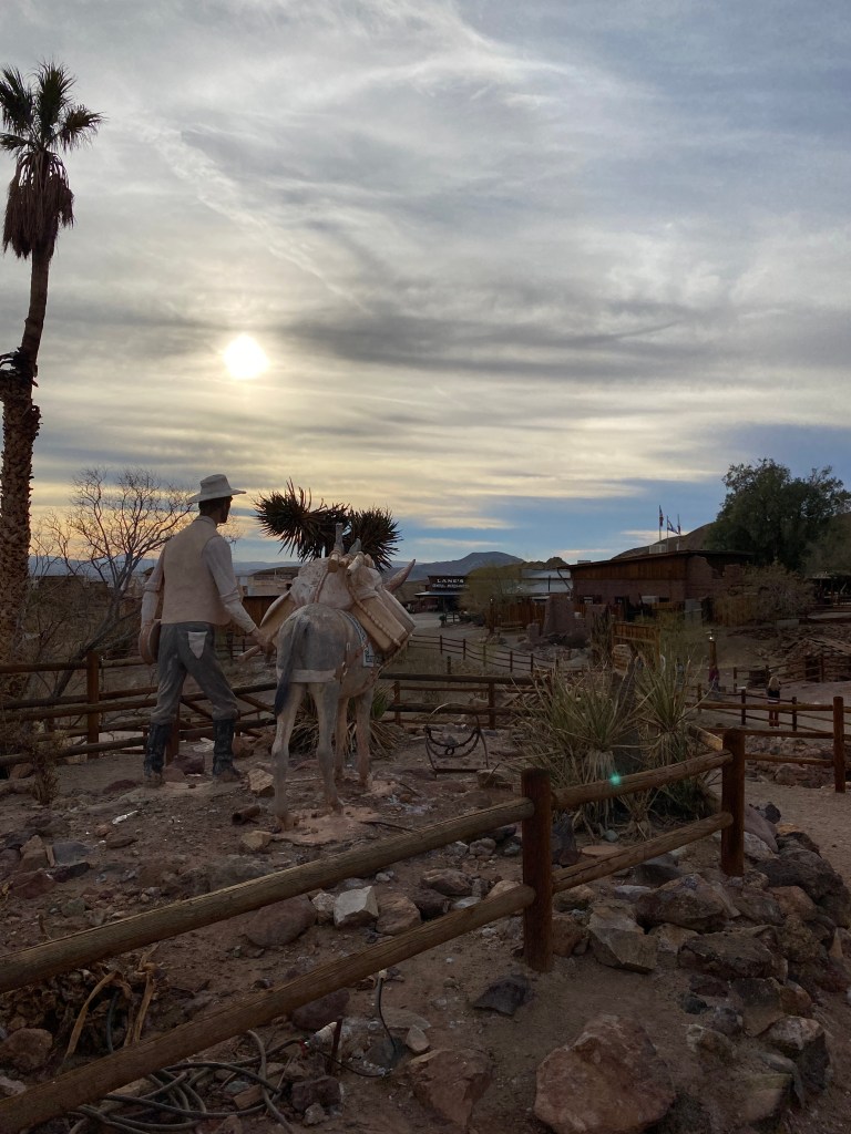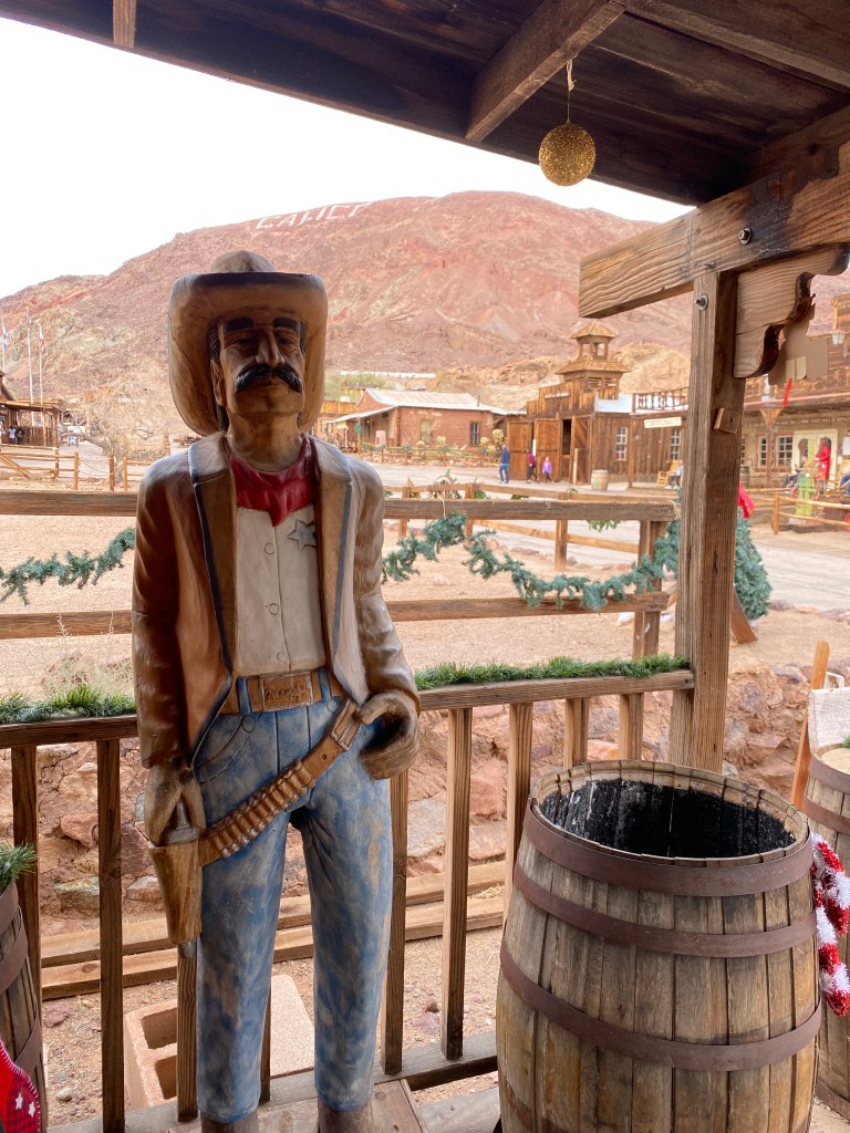 L’idée était de recréer une ville des années 1880 afin de servir de décor pour tourner des films. Aujourd’hui, c’est une vraie ville, mais minuscule, avec juste quelques maisons, un saloon et des boutiques, au milieu des vestiges de plateau de tournage 🎥 La rue à visiter c’est Mane Street et c’est très vite fait, probablement 15 minutes. Mignonet, c’est un arrêt sympa si on passe par là mais je ne suis pas sûre que ça vaille un détour. En reprenant la route, joie du désert et de ses paysages dégagés, on s’est retrouvé avec à gauche de la ligne d’horizon des sommets enneigés et à droite de vastes étendues sèches. J’adore !