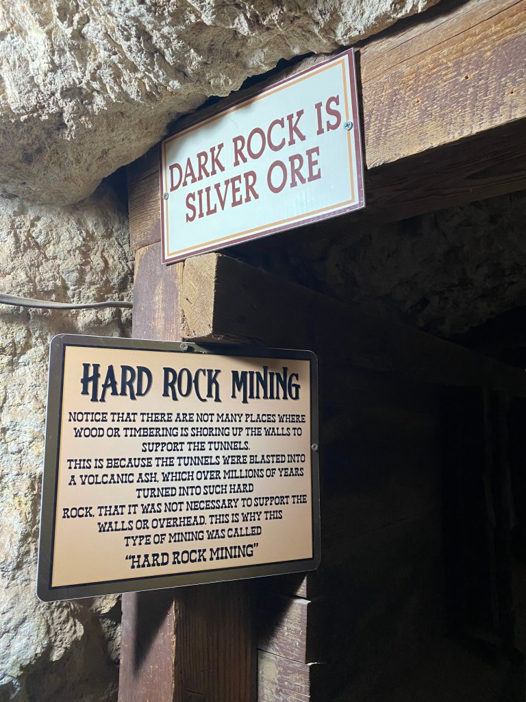 On paie l’entrée puis à l’intérieur toutes les activités sont payantes en sus. Un peu agaçant car on final on paie pour avoir le droit de déambuler entre les boutiques. Évidemment, on a sorti le portefeuille. Une peluche ourson cow-boy pour Andrea, tour de petit train et visite d’une ancienne mine. En bref, c’était sympa mais ça manque d’authenticité.