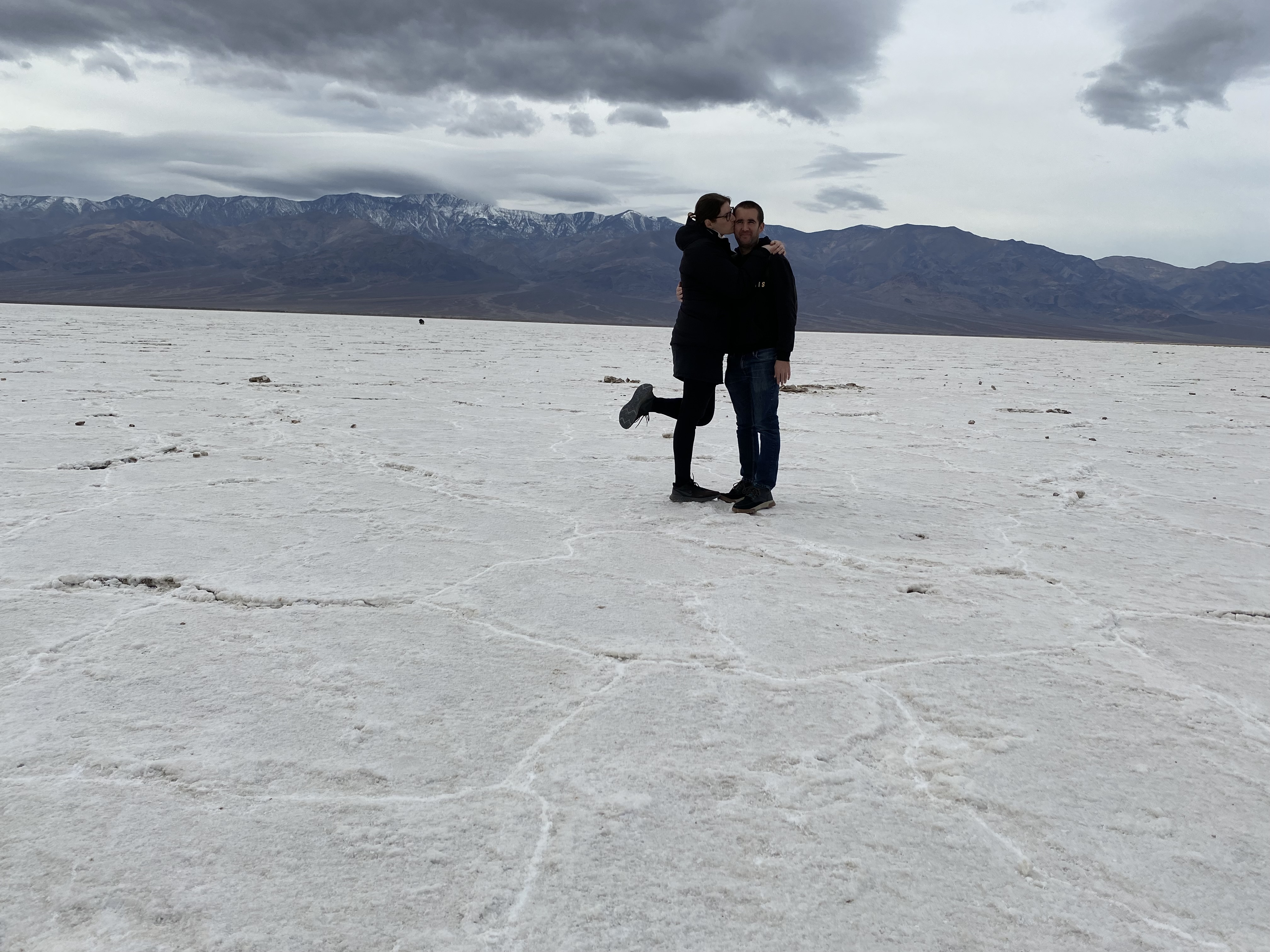 Un désert de sel à 86 mètres en dessous du niveau de la mer, le point le plus bas des USA. La dernière fois on avait dû s’arrêter à peine plus loin que le panneau d’entrée à cause de la chaleur. Cette fois-ci, on a pu marcher les 1,6km aller-retour pour se retrouver vraiment devant l’étendue de sel. Suréaliste.