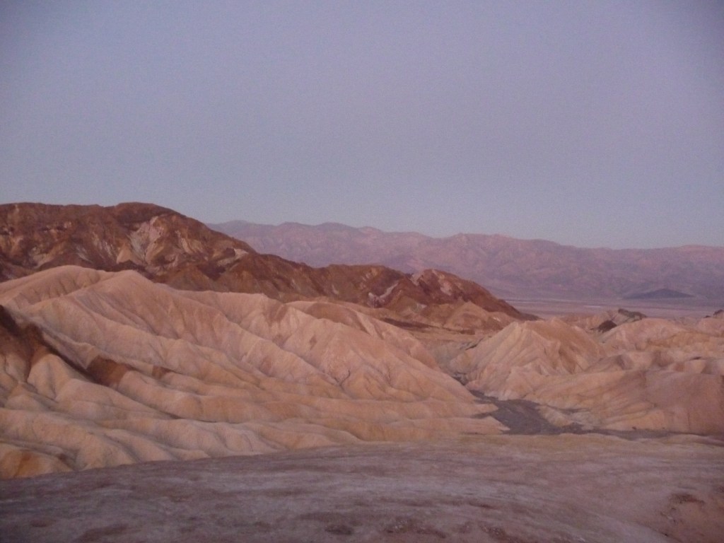Il y a 12 ans, Monsieur étant fan des Pink Floyd, il avait entendu parler du lever du soleil sur le Zabriskie Point. On était donc arrivé dans la nuit pour voir le spectacle. Avec la chaleur, impossible de randonner donc c’était parfait.