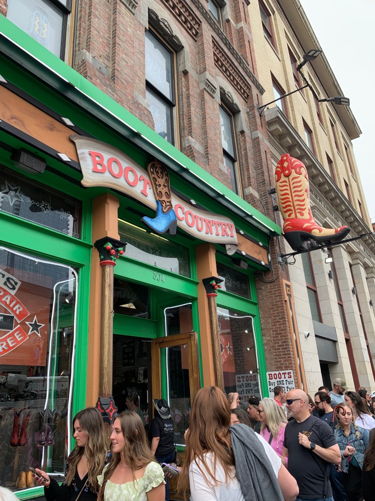 Évidemment, on a pas pu résister à quelques magasins de chapeaux et bottes de cow-boys. On est à Nashville quand même, hein !! Dans l’ensemble il faut compter $400 la paire de bottes et à en juger par la longue file d’attente à la caisse, ça n’avait pas l’air d’en refroidir beaucoup 🤑 Les chapeaux, plus abordables, me faisait de l’œil, mais bon en Pennsylvanie, c’est pas l’ambiance. Seb m’a demandé « Quand est-ce que tu vas le porter ? ». Euh… Jamais était probablement la réponse la plus honnête… Nous ne repartirons donc avec rien. Mais pour se fondre dans le décor, ici, c’est ce qu’il faut porter ! Presque toutes les filles dans la rue étaient en bottes et chapeau.