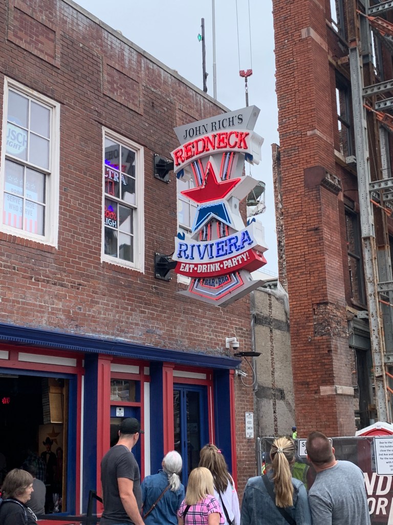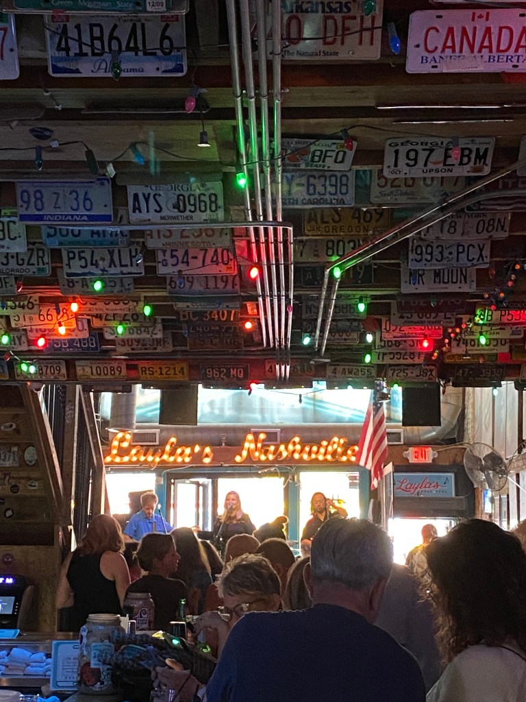 C’est là où tout se passe. Surtout de John Lewis way jusqu’au bout de la rue, cette section étant surnommée la Honky Tonk Highway. Un honky tonk est tout simplement un bar qui propose de la musique live. De nombreux artistes éminents de la musique country ont commencé leur carrière en tant que musicien dans les honky tonks. Sur recommandation d’une amie, nous sommes allés à Layla’s. Il n’y avait plus de table de libre. On est avec le petit bien sûr et je sais que c’est illégal pour un mineur de s’assoir au comptoir mais bon, je tente, je demande. Sur le cul… c’est un oui 😮 Première fois que ça nous arrive, on est ravi ! Le groupe de musiciens du jour était vraiment sympa. Un bon moment.