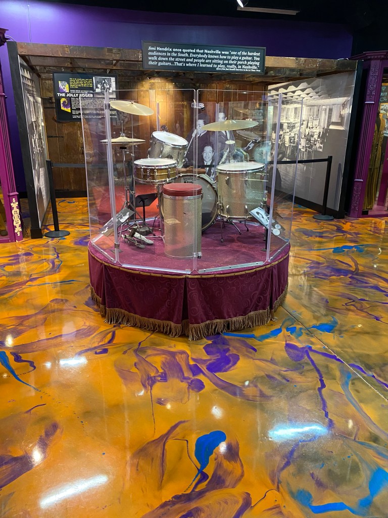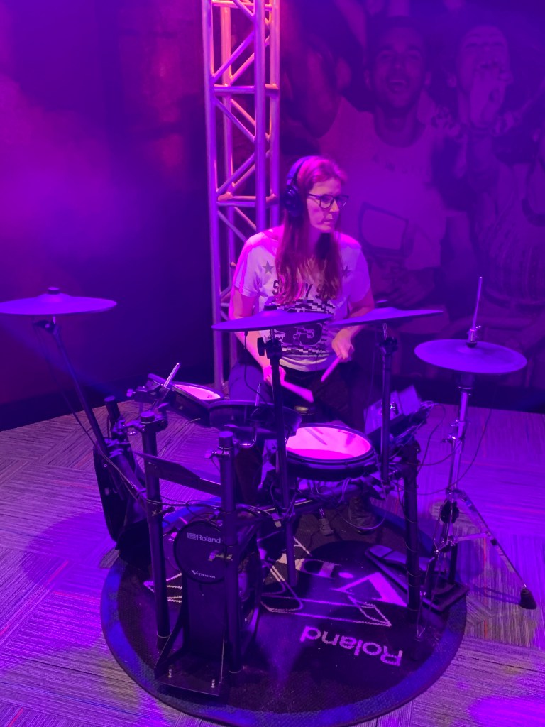Nous avons passé beaucoup de temps sur les instruments mis à disposition. Heureusement, ils sont rattachés à des casques donc on ne gêne personne à faire semblant d’être une rock star et vice versa ! Sur site, mais pas à l’intérieur du musée, il y avait également un chanteur / guitariste que j’ai adoré. Bien qu’après 4 ans sur le territoire mon anglais soit pas trop mal, les chansons sont encore impossibles à comprendre pour moi. Sauf pour la country, plus simples et mieux articulées. Du coup j’ai pu vraiment apprécié ce qu’il a proposé, des douces chansons d’amour à la chanson improbable sur la vie d’un tracteur 😂