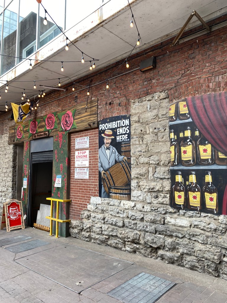 Pendant la prohibition, de nombreuses imprimeries ont mis en place des bars clandestins (speakeasy). Ces bars sont ensuite restés ouverts… mais à vue bien sûr 😜 Il y avait également des murals, ça fait toujours plaisir de croiser de l’art de rue.