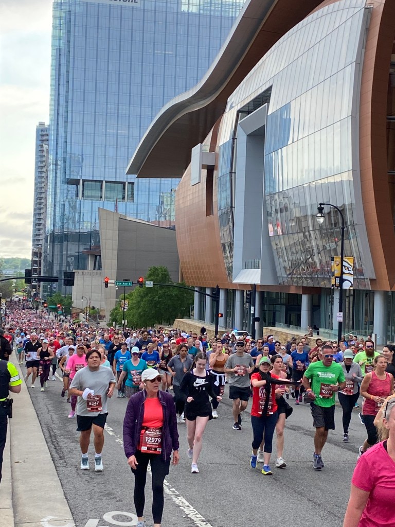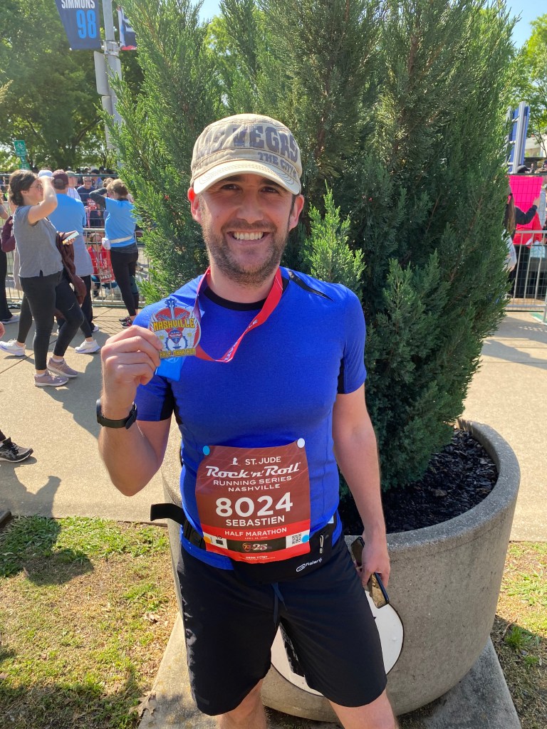 Ok, les courses en elles-mêmes n’ont rien à voir avec Nashville mais on y a été pour ça, on va quand même se faire plaisir avec quelques photos 😁 D’autant qu’il s’agit en ce qui me concerne de ma toute première médaille. DE MA VIE !! Et que malgré la sciatique et les genoux branlant de mamie, j’ai fait 13,24 min de courses non stop et j’en suis pas peu fière !! Le petit était également très content de sa course. Quand à Monsieur, il a atteint son objectif personnel à savoir semi en moins de 2h05 👏