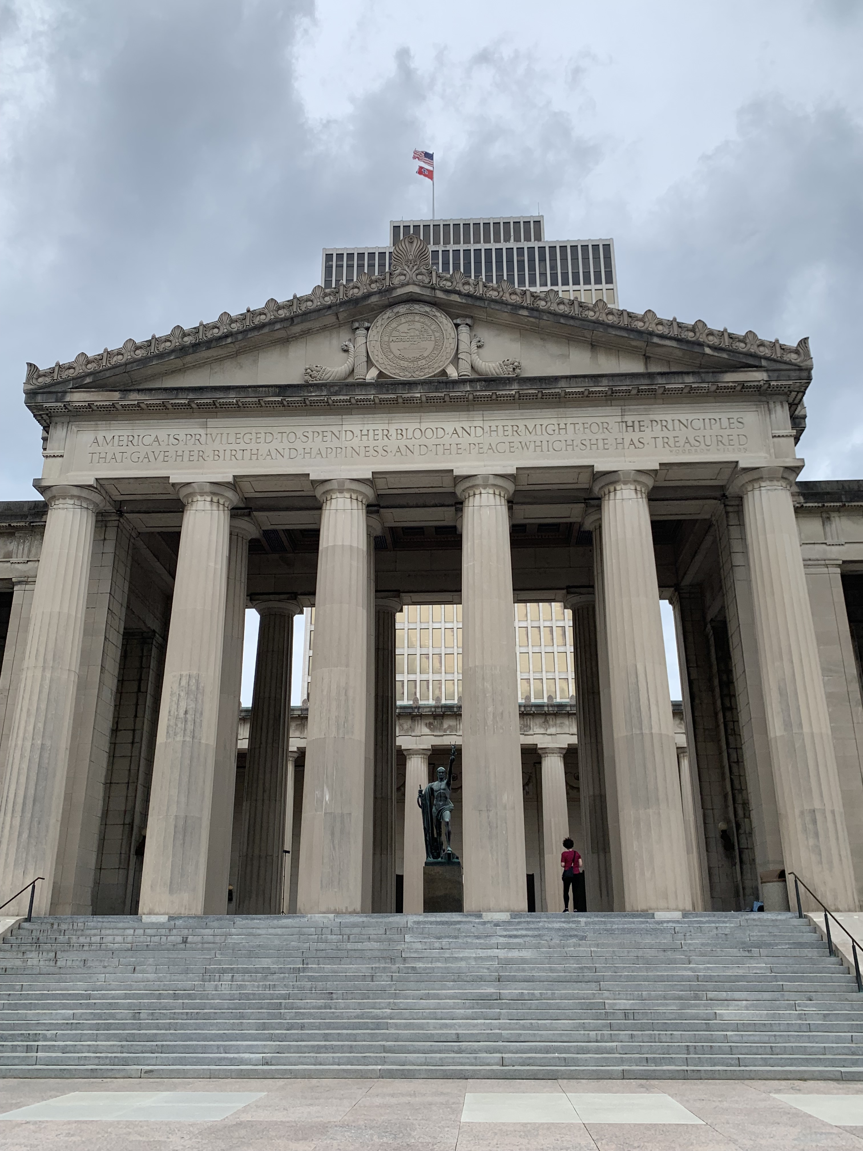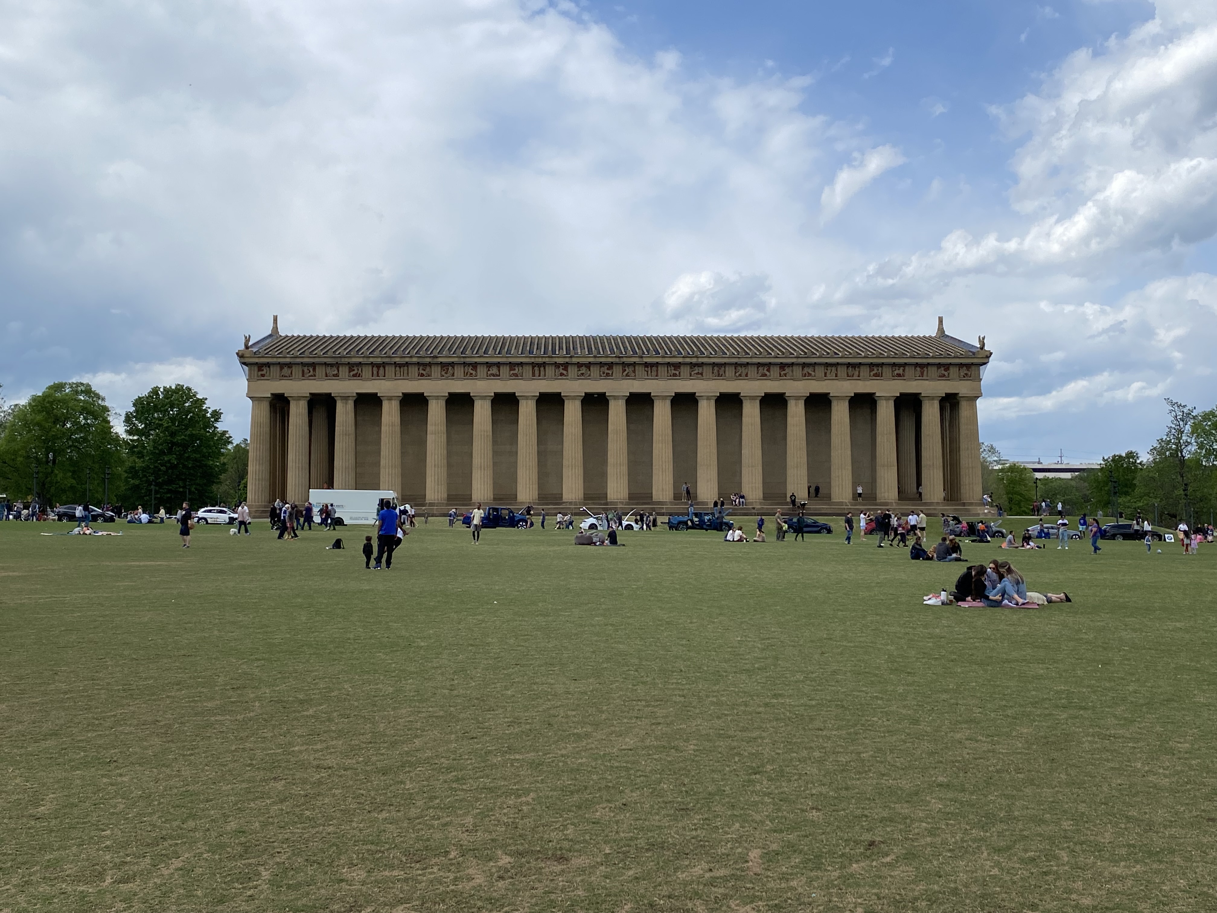 Il se trouve au Centennial Park de Nashville et c’est la seule réplique grandeur nature au Monde du Parthénon d’origine à Athènes. Il a été réalisé dans le cadre de l’exposition centenaire du Tennesse et sert aujourd’hui de musée d’art, dont la pièce maitresse est une sculpture de presque 13m d’Athéna Parthénos, la plus haute sculpture en intérieur d’Amérique du Nord. Nous n’en avons fait que le tour extérieur, et avons ensuite laissé le petit jouer au playground du parc, qui n’a pas grands autres atouts par ailleurs. Le jeu fut néanmoins bref, le ciel étant devenu subitement très capricieux… !