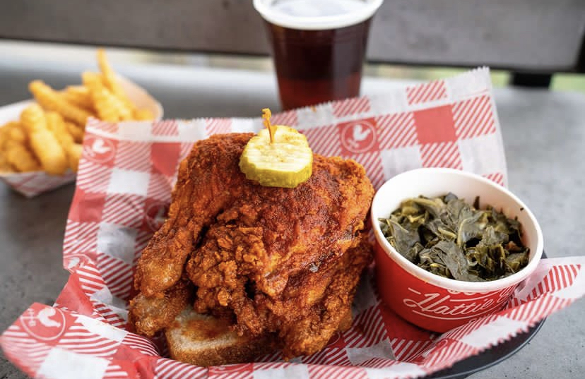 C’est du poulet frit, mais mariné avant dans de la sauce piquante. Tout simplement. Et ce plat trouve son origine à Nashville. On a goûté ça à Hattie B’s. Y’avait la queue devant et même si d’habitude on n’attend pas pour manger, on a fait une exception. Quand c’est un peu long, la serveuse sort et on peut acheter des bières directement dehors pour rendre l’attente plus agréable 🍺 Il faut être patient car même une fois commandé, il y a encore de l’attente. Pour un pseudo fast food, c’est plutôt bon. La façon dont c’est pané et frit est assez différent de ce qu’on voit d’habitude. Enfin, bon… si on arrive à la manger 😱 Il y a 6 niveaux « spicy », j’ai pris le second et j’ai déjà eu presque peine à finir. Et oui, c’est pas épicé à la française, je le dis souvent mais le baromètre n’est pas le même ici !!