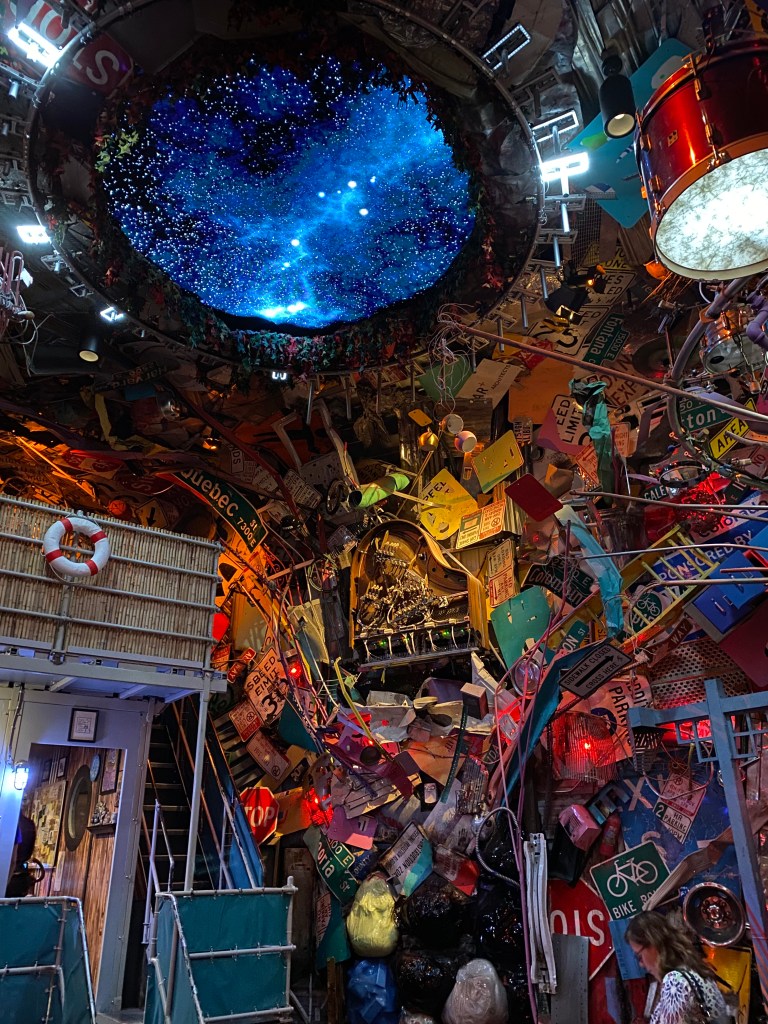 Et pour finir, deux autres resto notables, mais uniquement pour la décoration. Les deux étant des chaines, il ne faut rien attendre côté nourriture. Old Spaghetti factory, le petit a adoré manger dans le « train ». Et Joe’s crab shack pour lequel je n’ai pas pris de photo mais en même temps ça n’aurait rien rendu. Y’avait des serveurs avec des dégaines et des coupes de cheveux, on se serait cru dans les années 80/90 (ou en Pennsylvanie 🤫😂), musique et programmes TV également de ces décennies. Le tout saupoudré de poissons géants accrochés au plafond et tables décorées avec des autocollants et de la glue pailletée. Une vraie ambiance !