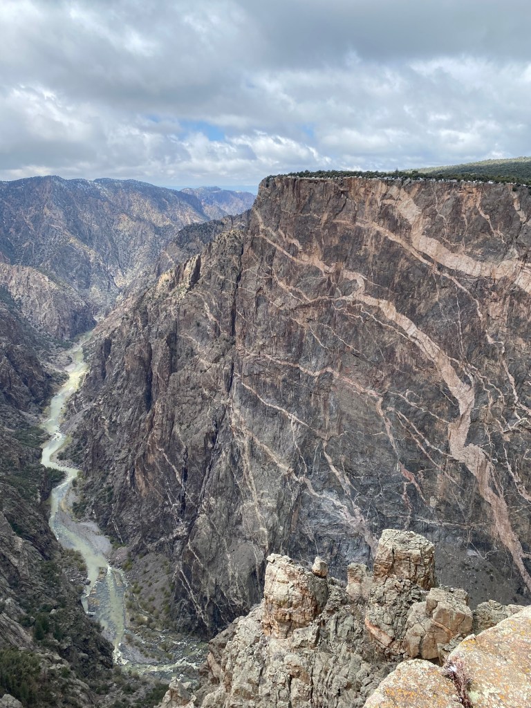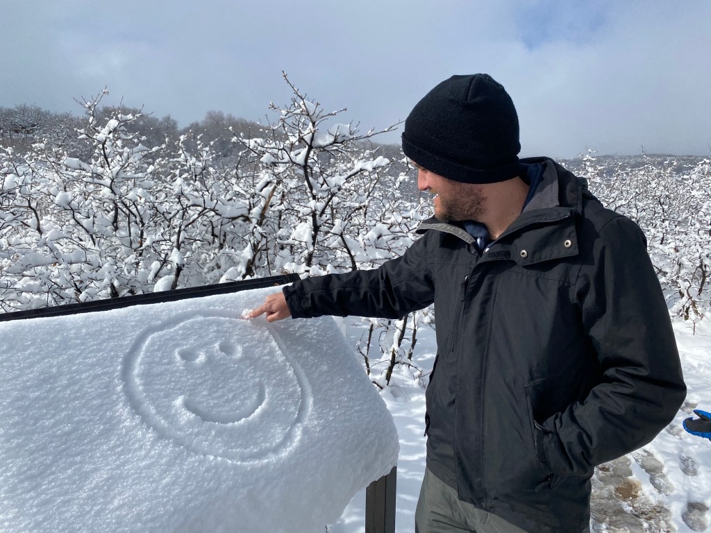 Il n’y a qu’une seule route, fermée en hiver, et ils venaient d’annoncer 3 jours avant notre arrivée qu’elle était rouverte. J’étais soulagée car tout l’itinéraire ou presque avait été pensé pour ce site. Il y aura quand même une tempête de neige la veille et la route sera fermée pendant environ 2h. En attendant, bataille de boule de neige, bonhomme de neige, on a récupéré le carnet Junior Ranger et bien sûr on a profité de Gunnisson View, en contrebas du Visitor Center. Encore une fois, quelle atmosphère !