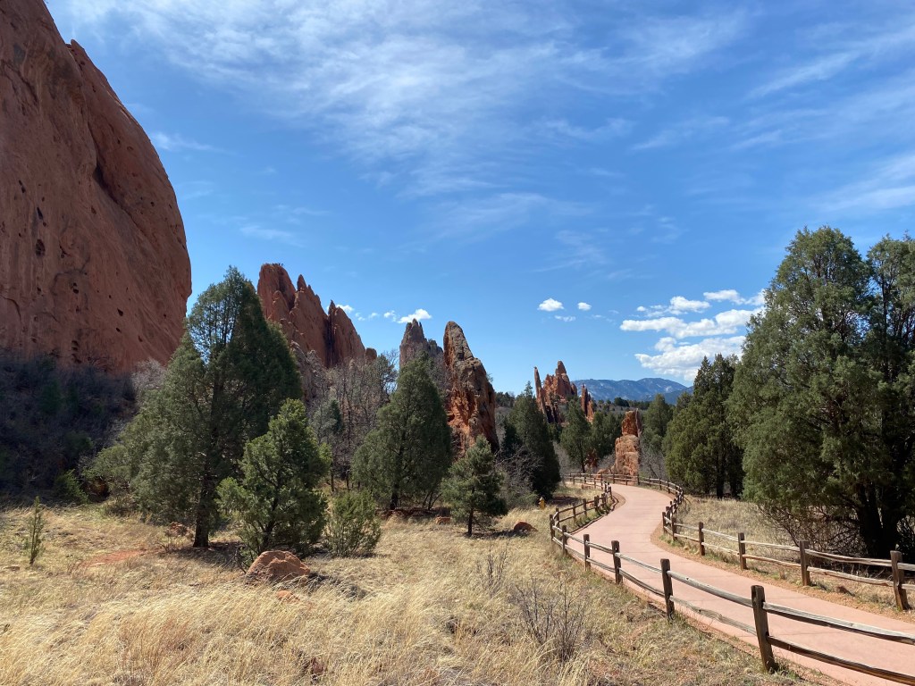 Juste en face de Garden of the gods se trouve ce site, lui aussi avec de belles formations rocheuses. Là encore, on a suivi un itinéraire alltrails.com de 3km qui couplait 2 trails. Rochers plus éloignées les uns des autres, plus petits, moins haut, et pourtant… c’était super. Certaines parties sont en réhabilitation et on a croisé un groupe d’au moins 20 volontaires travaillant sur une section du trail. Passé leur musique et bavardage pour se donner du coeur à l’ouvrage, c’était hyper calme. Moins touristique, les chemins ne sont pas pavés, plus nature, plus sauvage. Une belle surprise ! Néanmoins, restons honnête, pour ceux qui n’ont pas le temps de faire les deux, c’est bien sûr à Garden of the Gods qu’il faut se rendre…