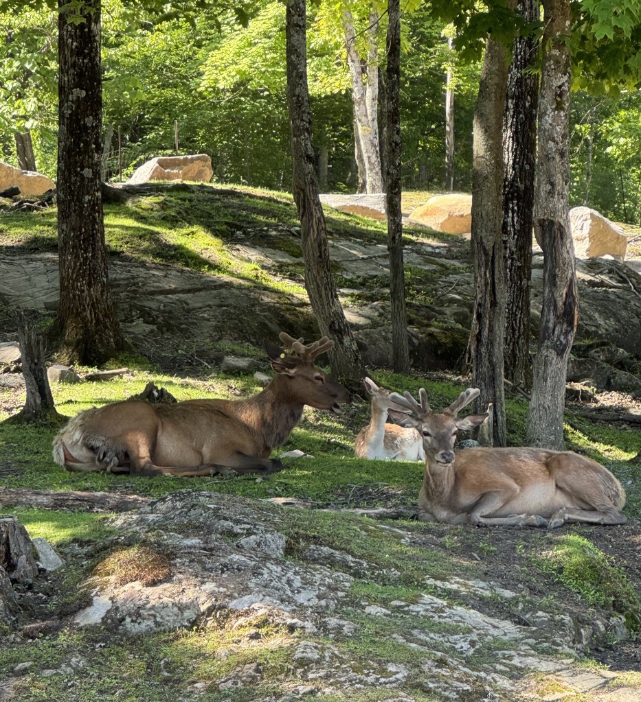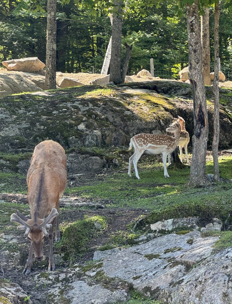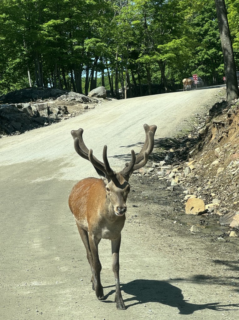 Autre point positif, ils présentent uniquement des animaux adaptés au climat du Québec. A part quelques espèces, comme les ours qui ont des barrières, les autres sont en liberté et c’est nous qui sommes « enfermés » dans notre voiture. Sur un parcours de 12km, nous croisons en majorité des cervidés mais je ne m’en lasse pas.