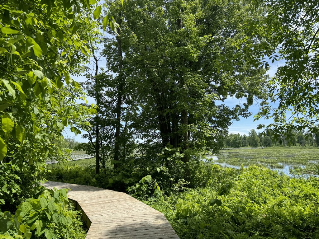 Au final, il n’y a que là qu’on a vraiment vu la faune. Une fois qu’on s’est enfoncé dans le bois on n’a pas eu le temps de regarder où que ce soit… De toute façon, les panneaux éducatifs étaient tous démontés, probablement pour les changer par des nouveaux. En effet, étant partis sans répulsif, on s’est retrouvé avec une nuée, que dis-je, une armée de moustiques. Seul moyen de les éviter : être en mouvement permanent. Même en se secouant non-stop dans tous les sens (heureusement qu’il n’y avait pas de caméras on était ridicule ! Si t’es fan de Friends, on ressemblait à Phoebe qui court !) on s’est fait bouffer. Seul Monsieur a pris le temps de prendre une photo de ci de là.