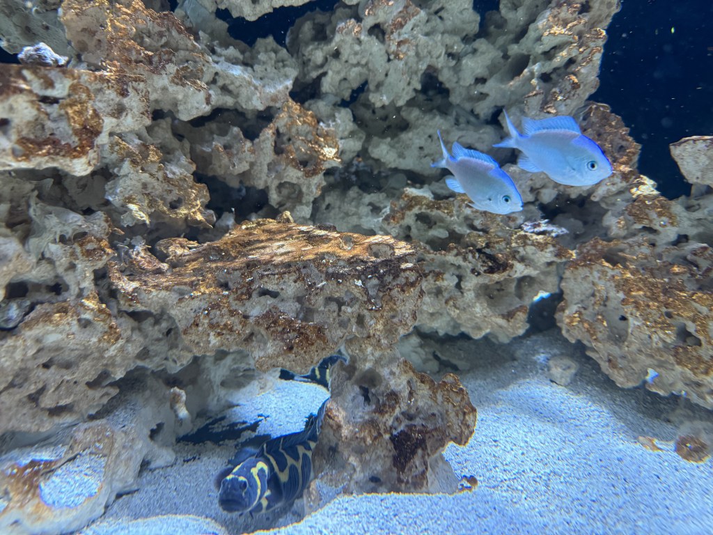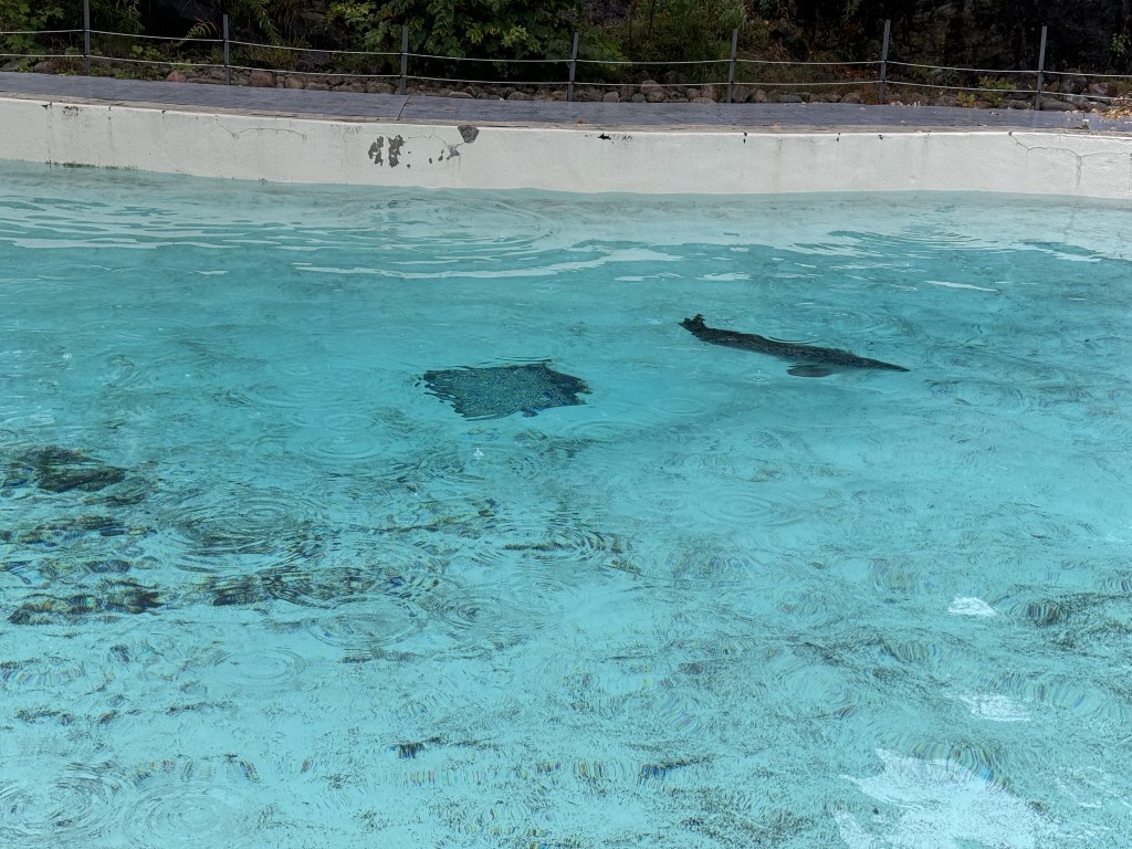Par contre, les installations sont vétustes : vitres, sols, peintures,… tout serait à refaire. Et les fausses plantes dans les bassins ? Pas terrible non plus. Alors, oui, c’est souvent comme ça mais là parfois c’est juste des morceaux de plastique fluo. Comme souvent, ça fini avec le bassin où toucher les raies. C’était étouffant de monde, la dame au micro rappelait les règles et surtout « ne pas toucher la queue, c’est très sensible ». Non mais, si les animaux sont sensibles, arrêtez de les exposer pour qu’ils soient tripotés toute la journée par des gens pour leur plaisir. C’est de la torture. En résumé, le site à du potentiel mais en l’état, c’est un non.